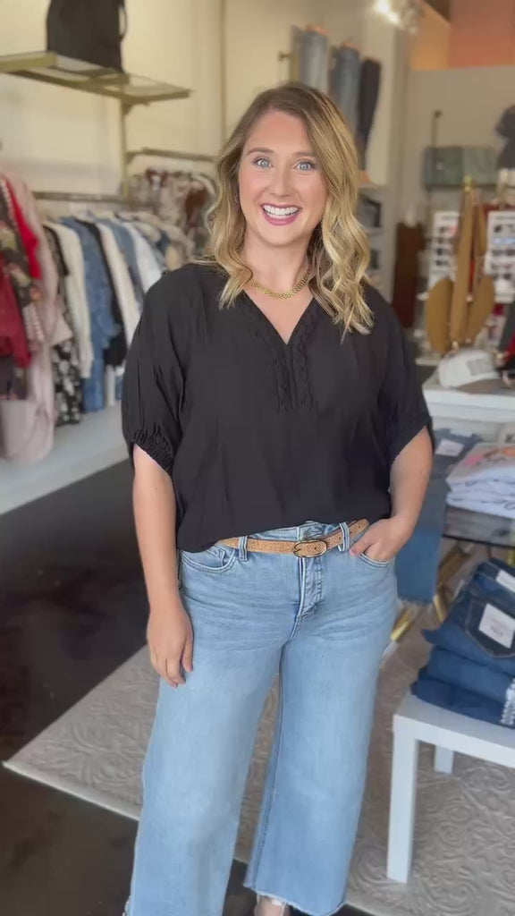 The Braided Blouse combines classic style with a subtle braided detail for a timeless look. Its lightweight fabric offers effortless comfort, making it perfect for day-to-night wear. This blouse adds a refined touch to any outfit while keeping you feeling cool and relaxed!