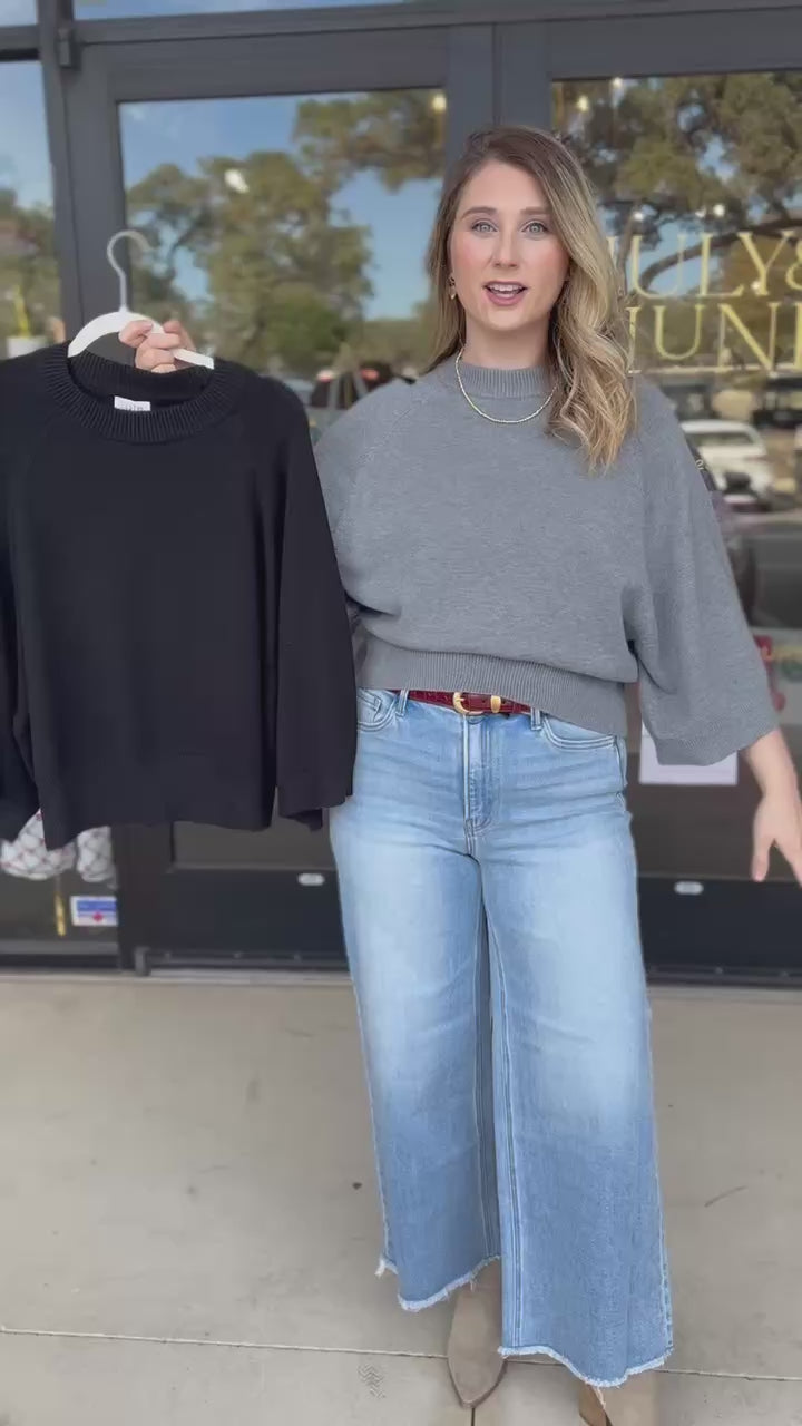 Meet your new seasonal staple — the Fall's Favorite Sweater Top in Black and Grey. Its soft knit, relaxed drape, and chic dolman sleeves make it the perfect blend of cozy and elevated. A flattering silhouette that pairs effortlessly with denim, trousers, or your favorite winter pieces!