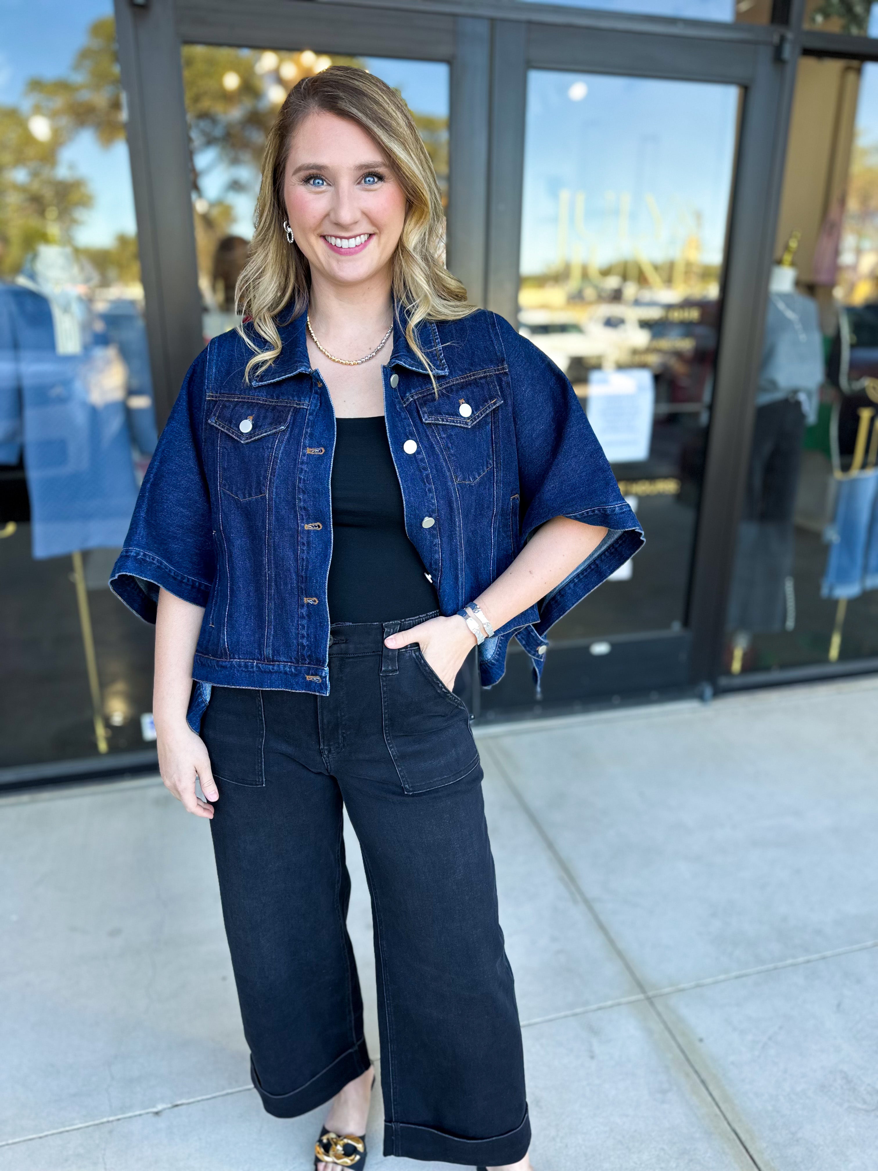 Short Sleeve Denim Jacket-600 Outerwear-TCEC-July & June Women's Fashion Boutique Located in San Antonio, Texas
