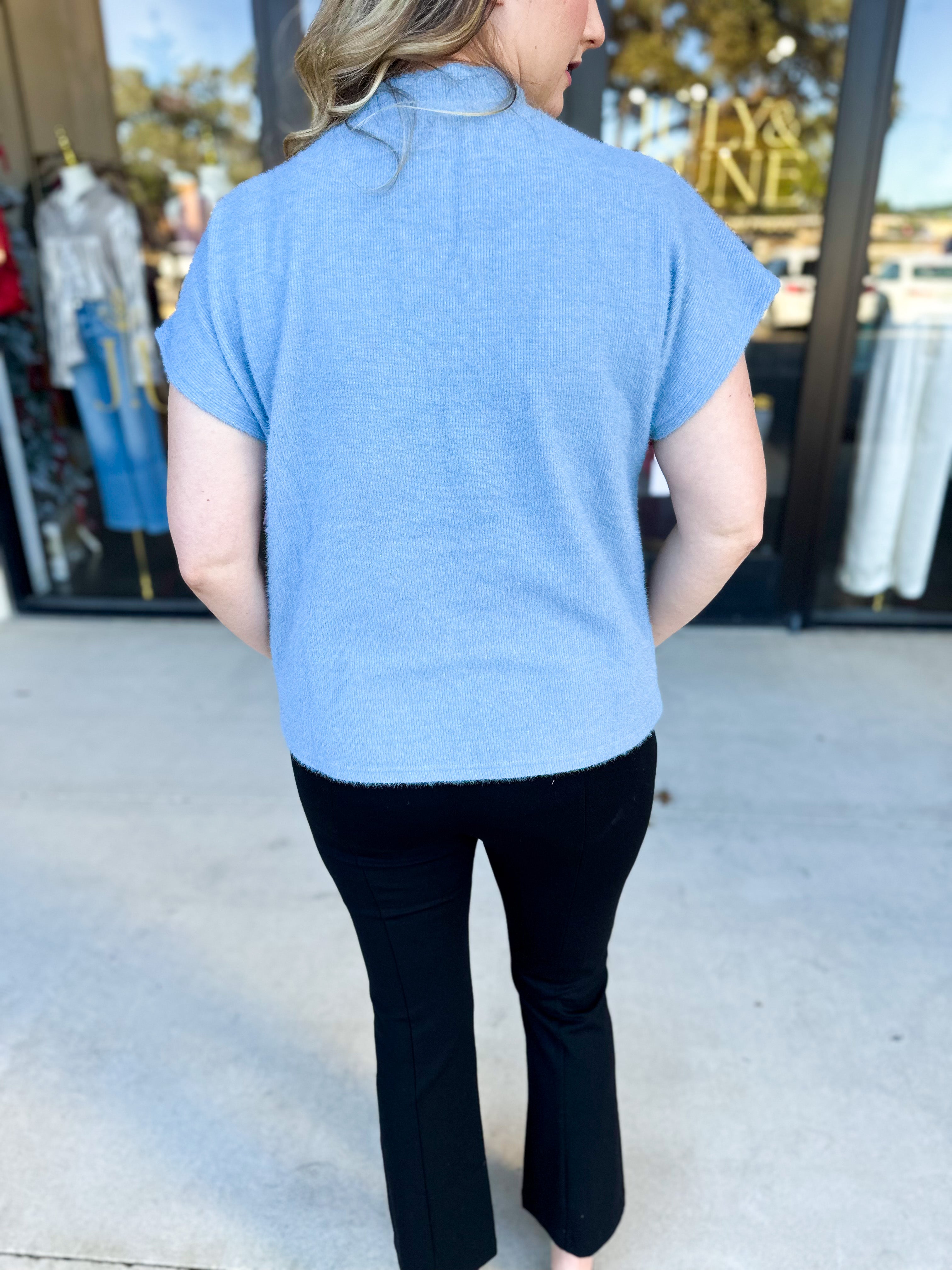 THML - Mock Neck Fuzzy Sweater Top - Ice Blue