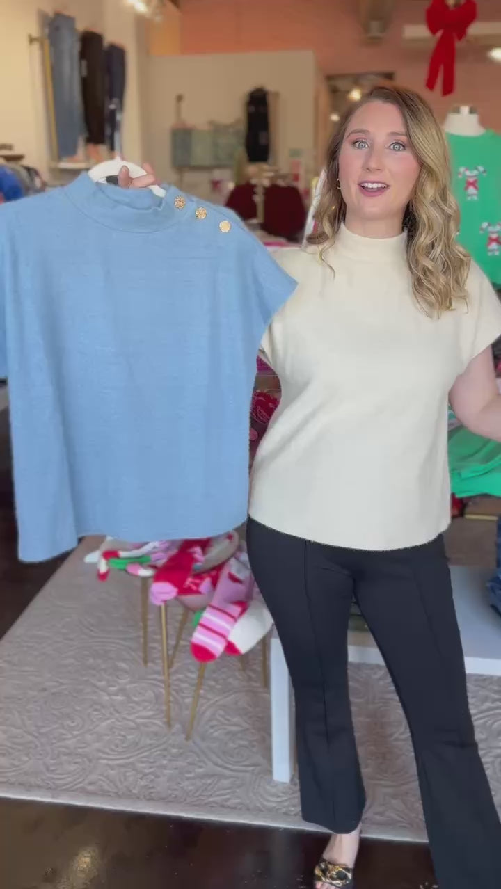 This THML Mock Neck Fuzzy Sweater Top combines ultra soft comfort with timeless style. An effortless addition to any wardrobe with a pop of fun button details. Perfect for layering or wearing alone, it's a versatile piece you'll reach for again and again!