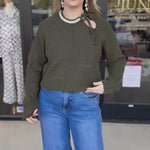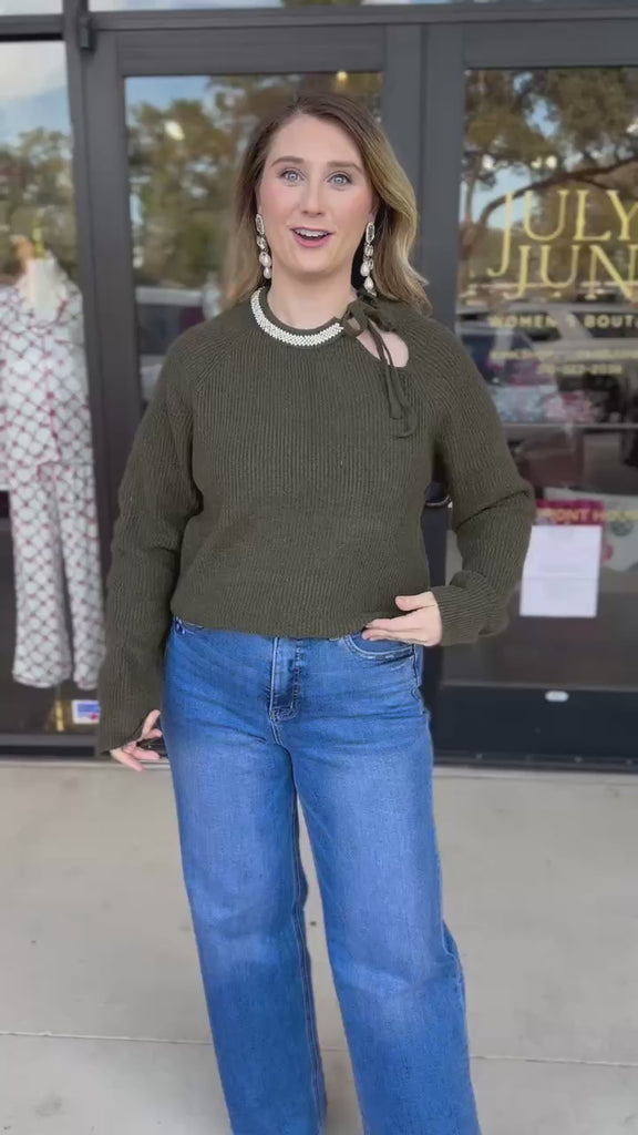 Get ready for the Holiday season with the Chloe Rhinestone Detail Sweater. Its soft fabric makes it so comfortable while the rhinestone details adds class and elegance! We, of course, love the little peak-a-boo neckline detail!