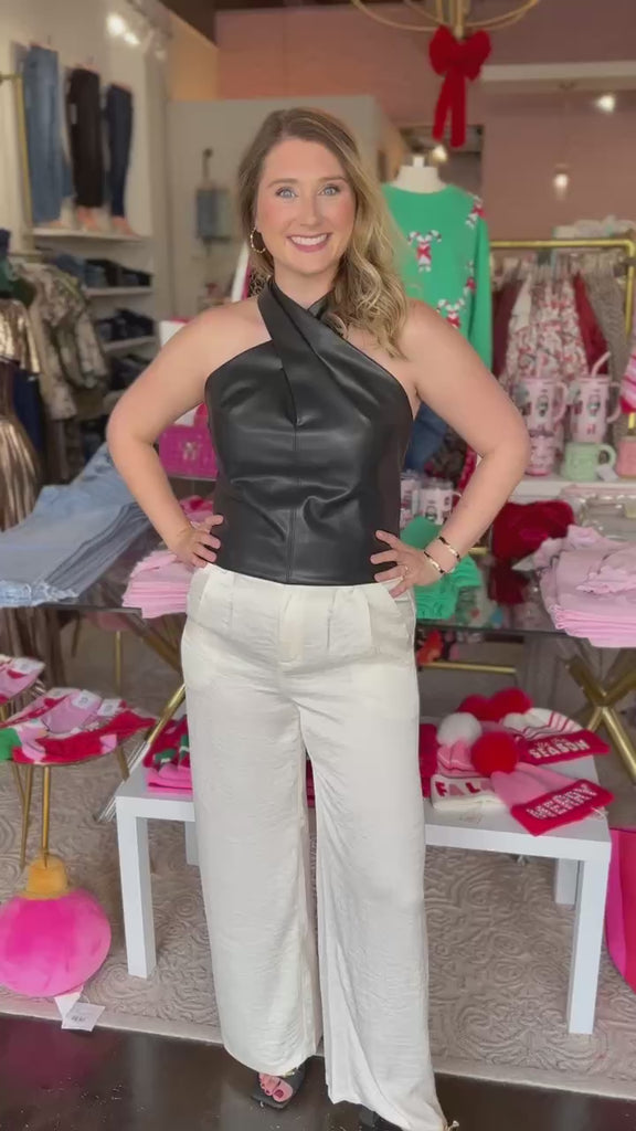 - Pair with the Faux Leather Halter Top pictured and heels for a date night outfit!
