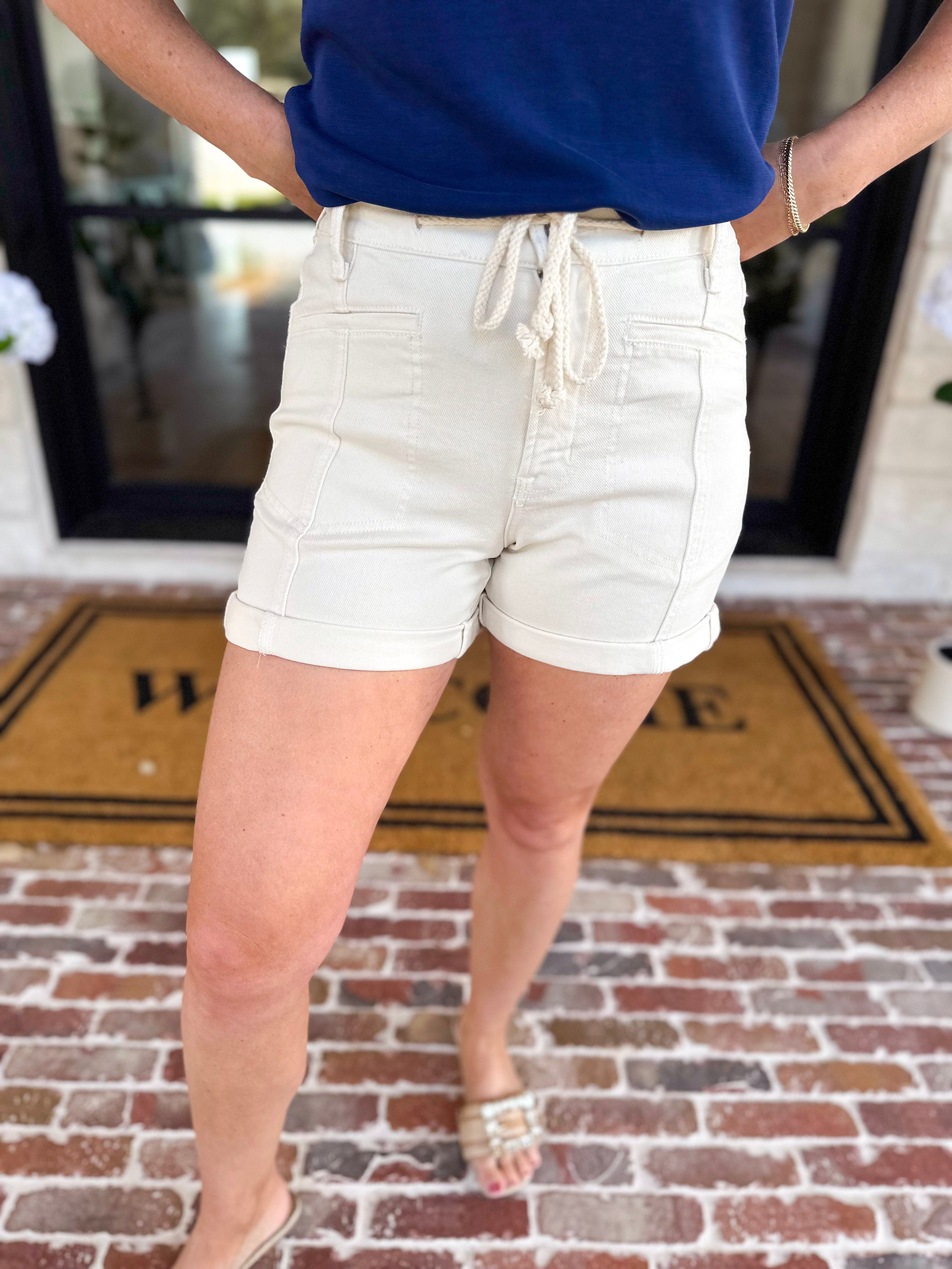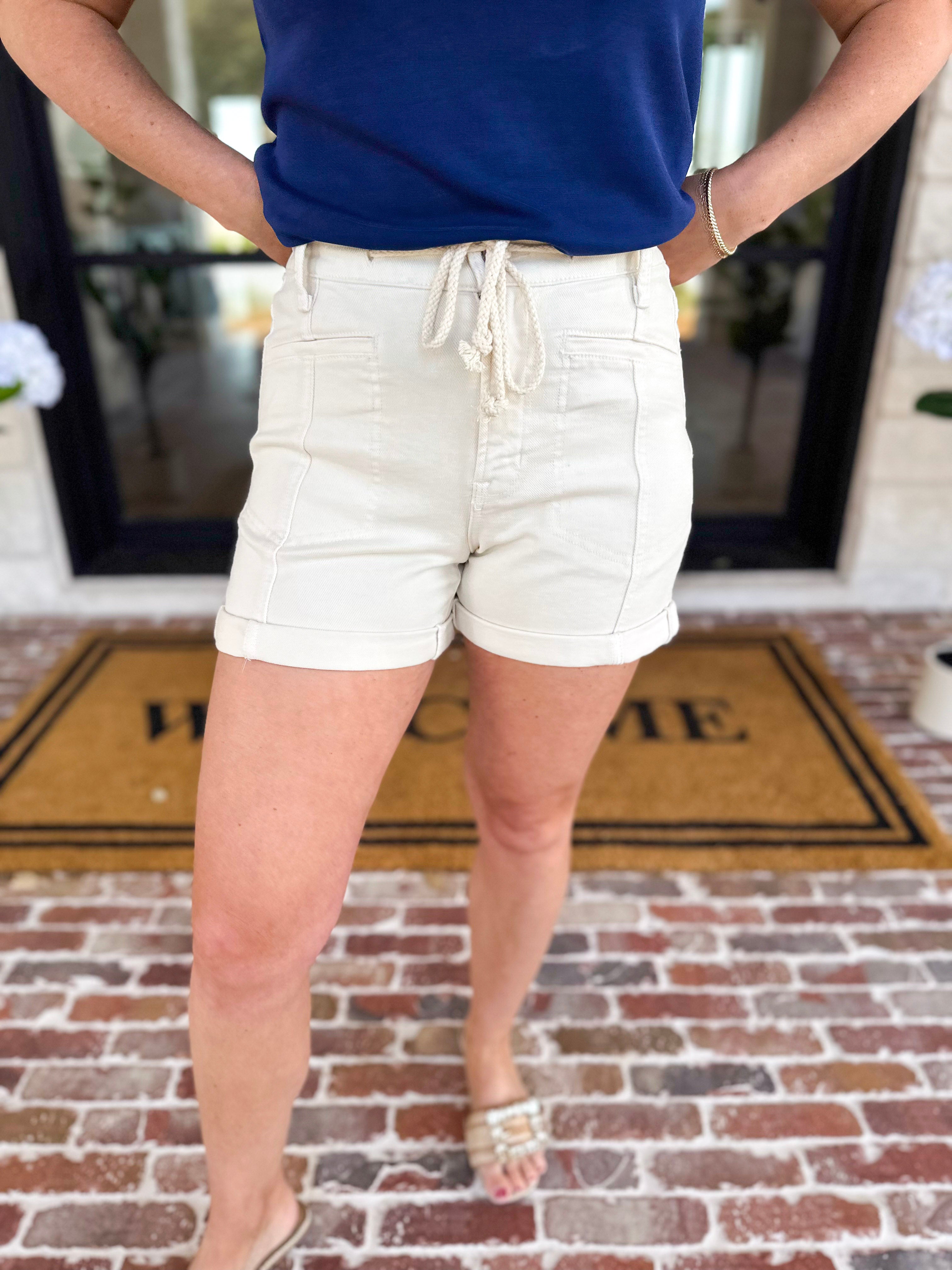 Elevate your summer style with Cream Drawstring Denim Shorts. A must-have for any wardrobe, these shorts are trendy and chic. Perfect for all summer days! Whether you are out shopping with friends or running errands, you will feel your best!