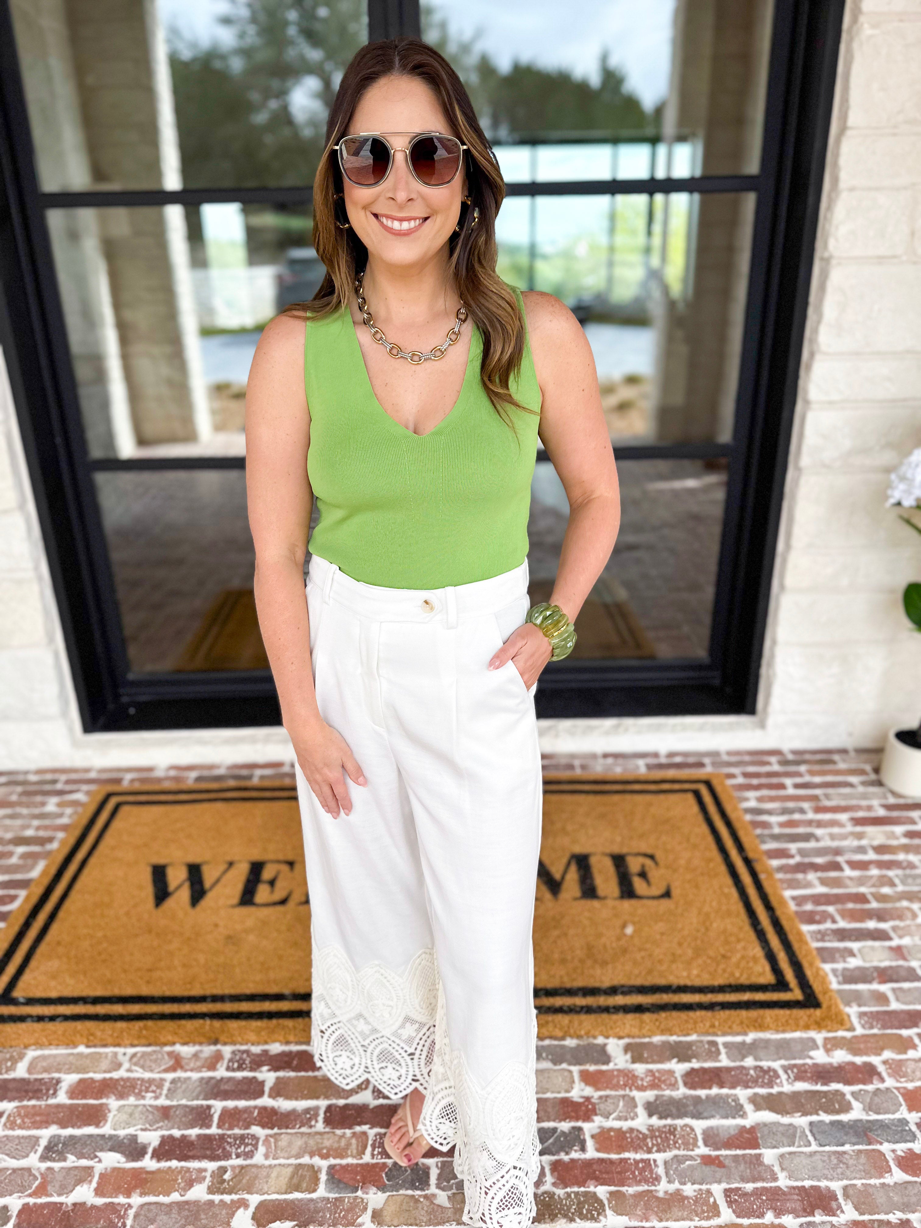 Current Air - Knit V-Neck Tank - Matcha