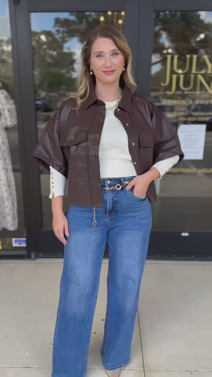 Get ready to rock your fall/winter wardrobe with our Utility Shirt Jacket made in a trendy faux leather material! Easy for layering, this is the perfect jacket for any season. Plus, it's made with faux leather so you can look stylish and chic at the same time!