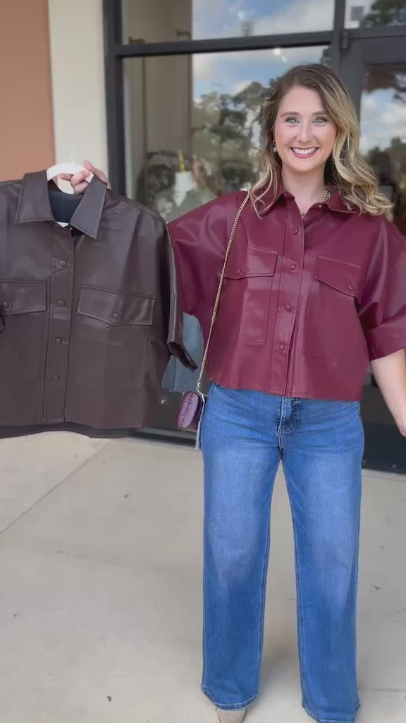 Get ready to rock your fall/winter wardrobe with our Utility Shirt Jacket made in a trendy faux leather material! Easy for layering, this is the perfect jacket for any season. Plus, it's made with faux leather so you can look stylish and chic at the same time!