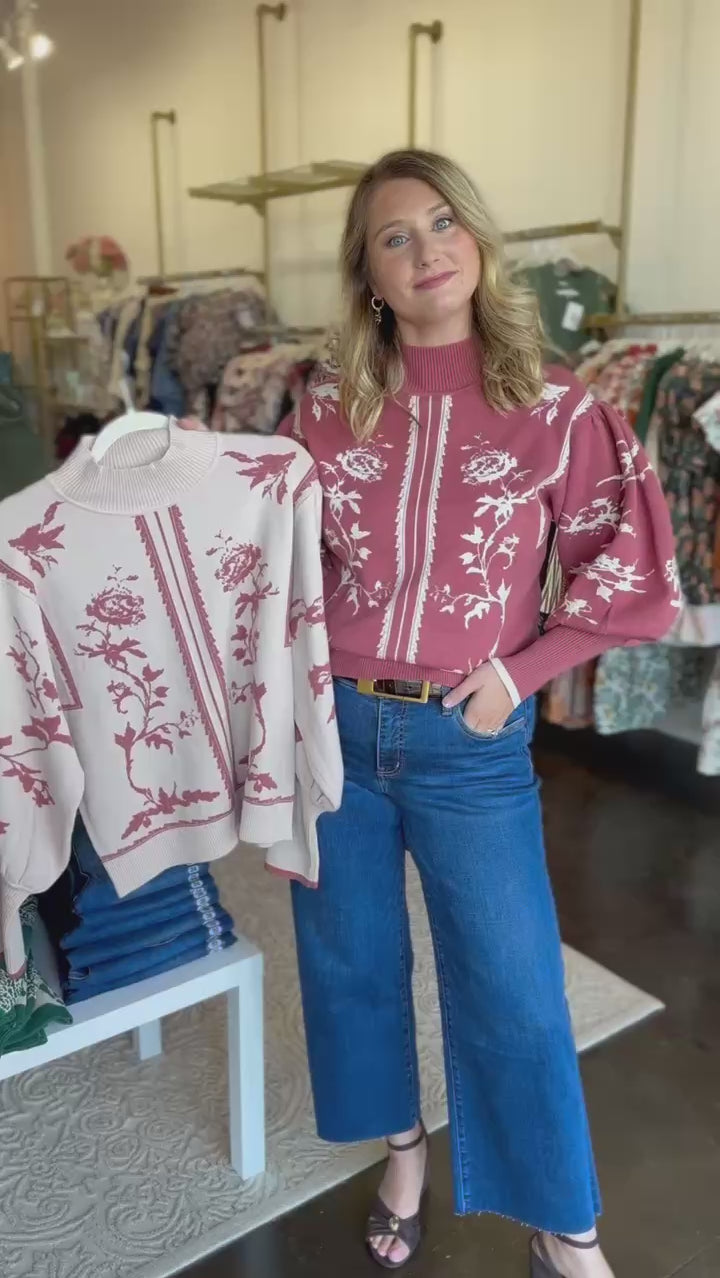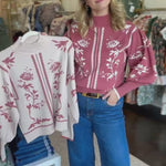 Our Vintage Floral Sweater brings a soft and feminine fall color to your wardrobe as well as warmth and comfort with its soft, cozy fabric. Easy to wear with a stretchy pair of jeans and fall boots!