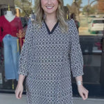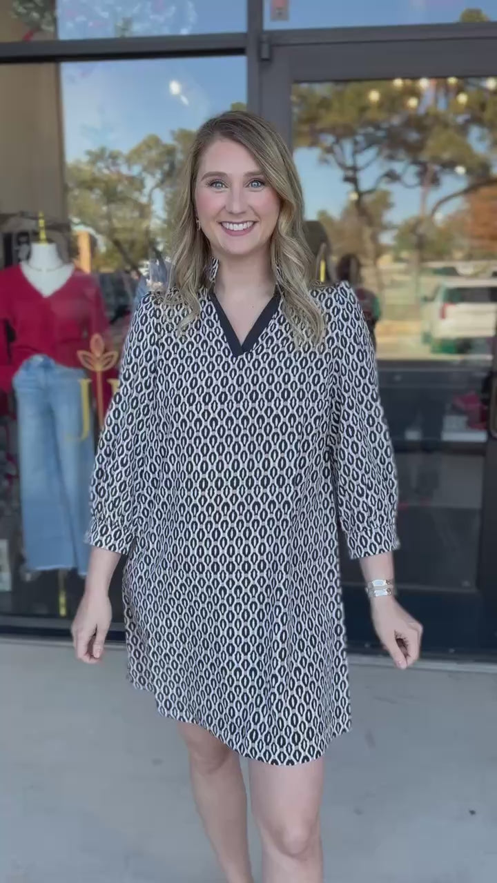 The Raelyn High Notes Mini Dress brings bold, modern style with its striking print and effortlessly flattering silhouette. Dress it up or down—wear to work, church, dinners with friends or wear casually for a brunch. With neutral abstract print, it’s the perfect statement piece for any occasion!