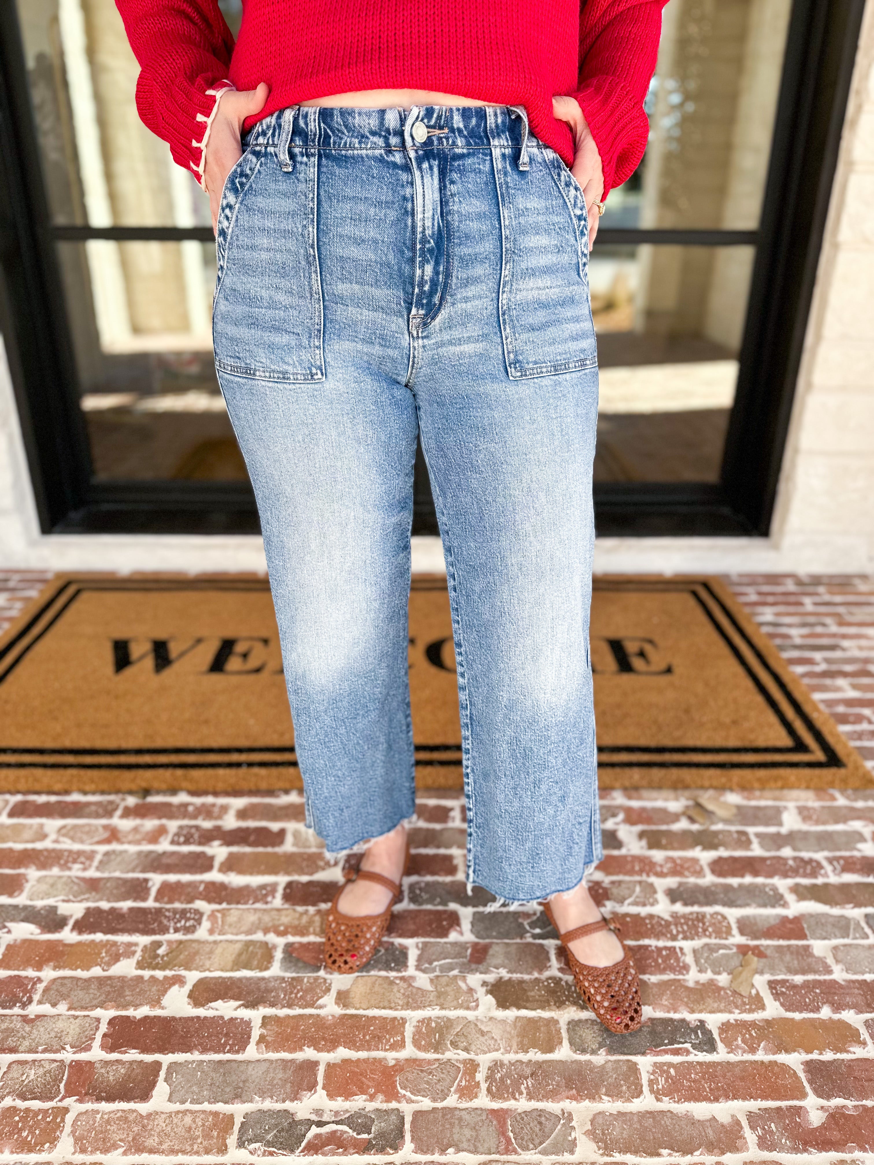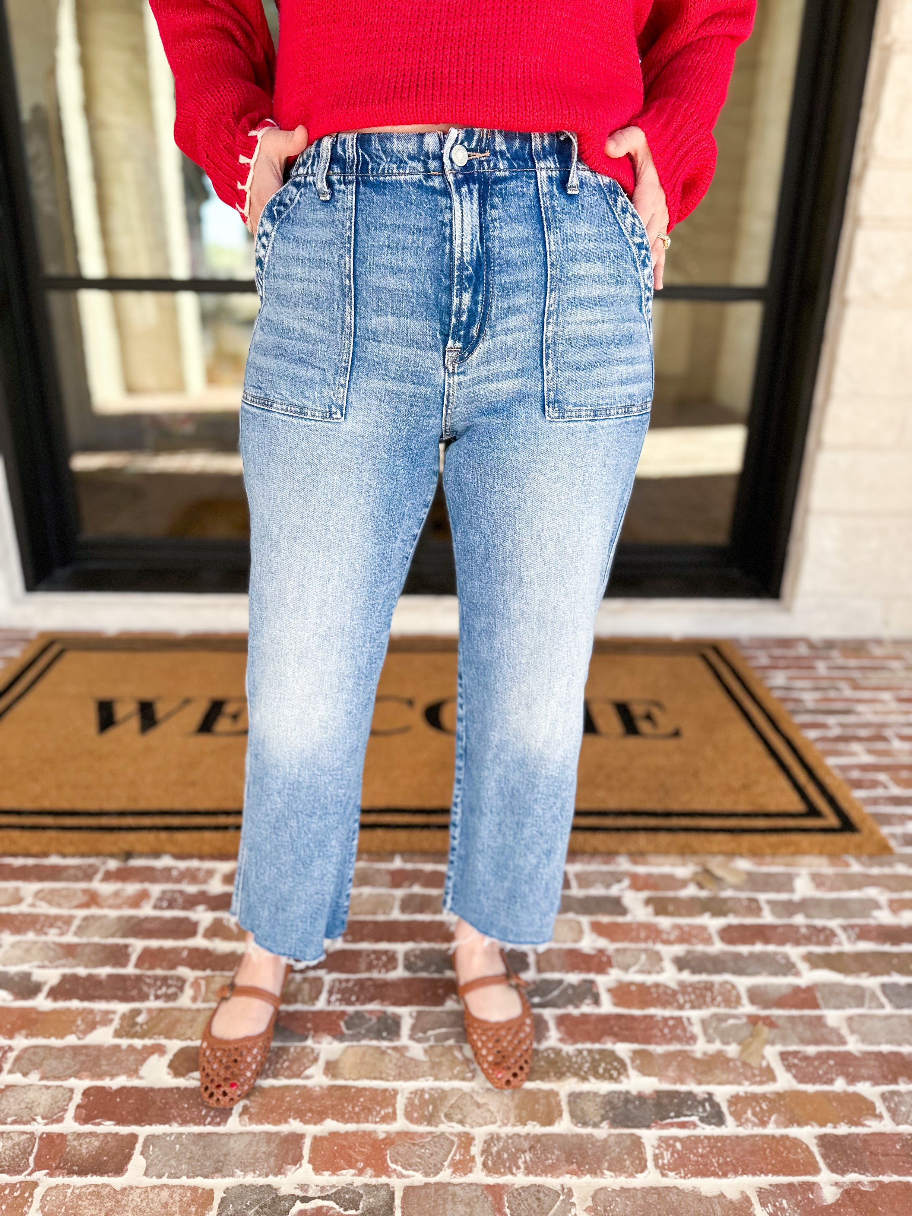 Vervet - High Rise Slim Wide Patch Pocket Jeans-400 Pants-VEVERT BY FLYING MONKEY-July & June Women's Fashion Boutique Located in San Antonio, Texas