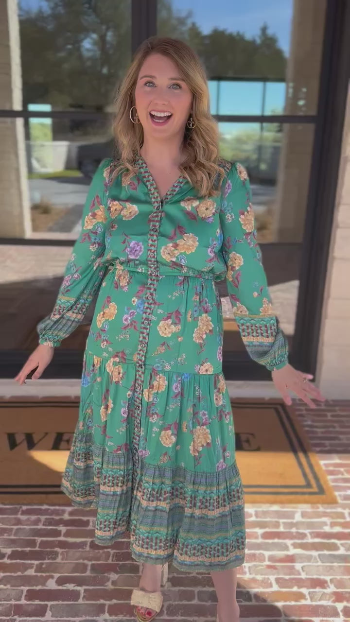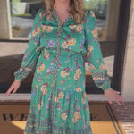 Current Air - Green Floral Satin Midi Dress-500 Midi-CURRENT AIR CLOTHING-July & June Women's Fashion Boutique Located in San Antonio, Texas