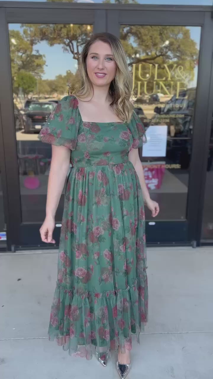 Elevate your winter wardrobe with this stunning Hunter Green Garden Midi Dress—the perfect choice for any special occasion. Featuring delicate winter florals against a rich hunter green backdrop, this dress captures feminine elegance. Whether you're attending a holiday gathering or a formal event, this dress delivers timeless beauty!