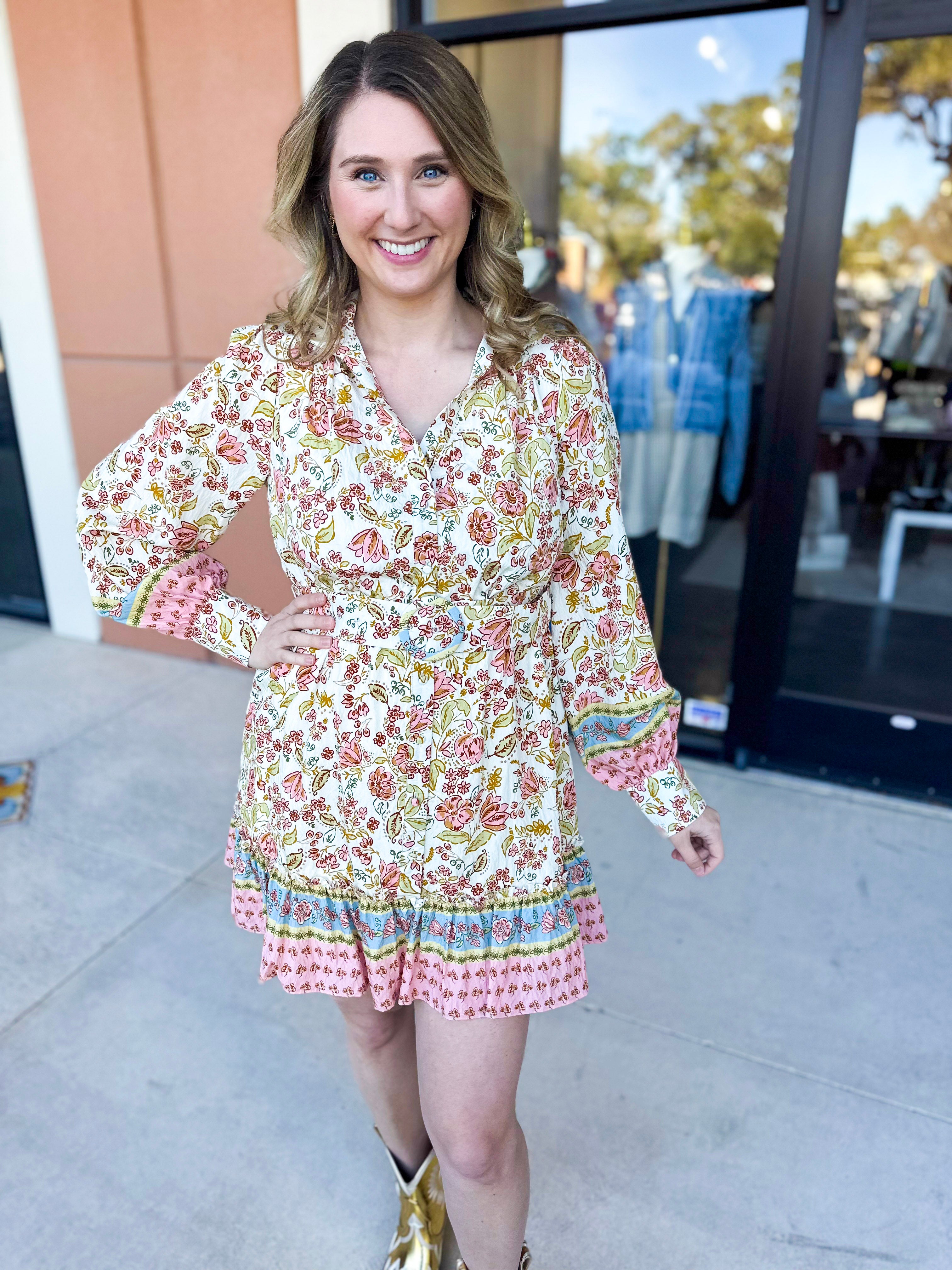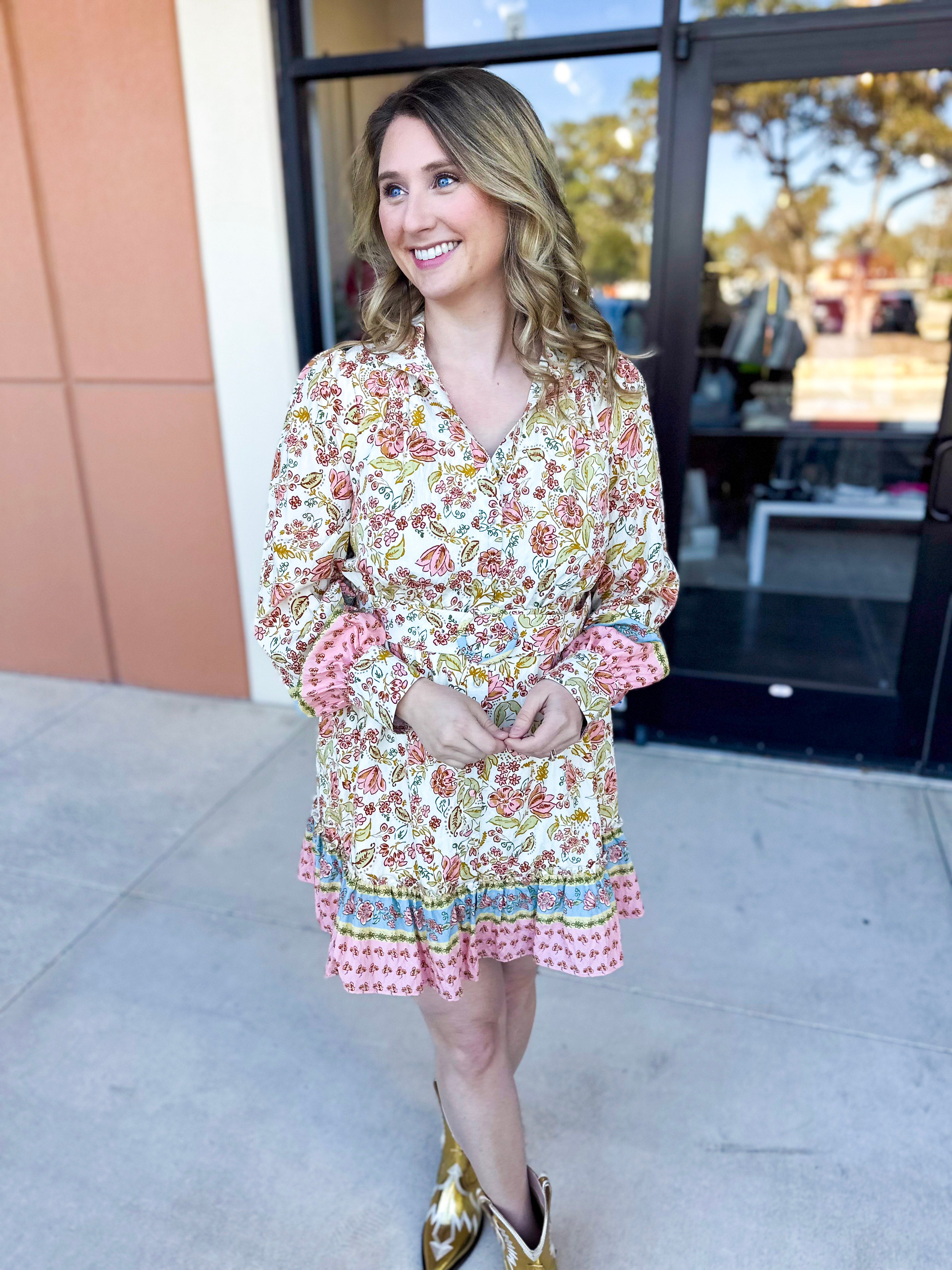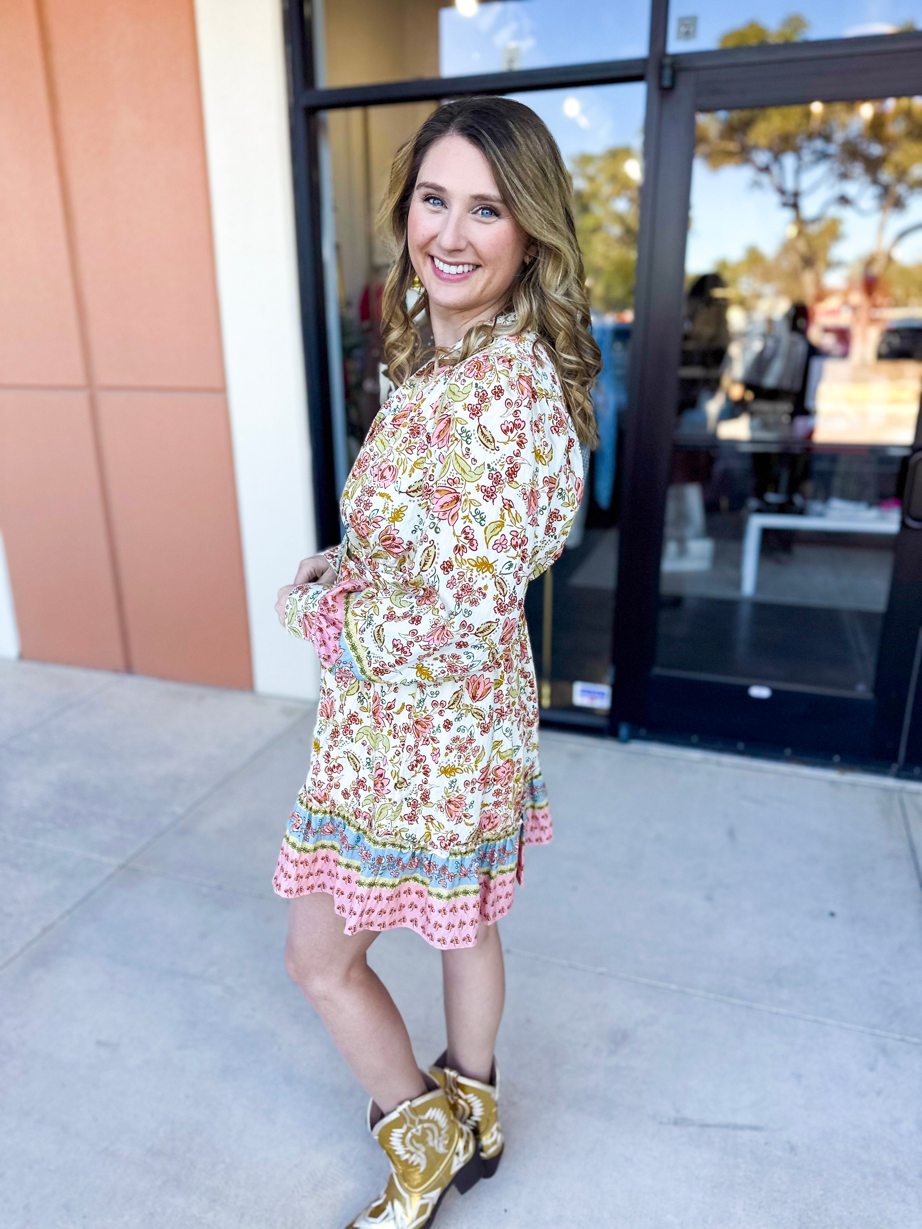 Indulge in the delicate and feminine feel of our Savannah Mini Dress. The soft and colorful print adds a touch of whimsy, while the easy fit ensures comfort and effortless style. Perfect for an effortless spring and summer look!