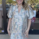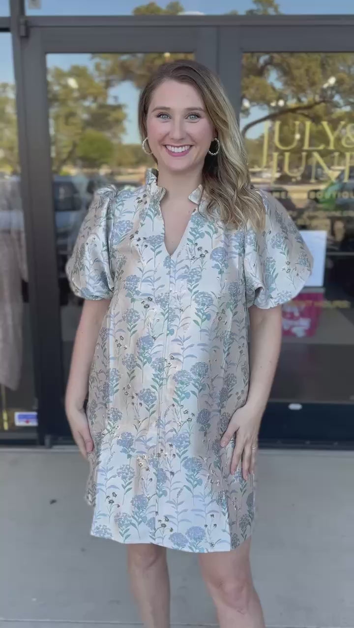 Celebrate the season in style with our Winter Blue Floral Mini Dress. This fun and shimmery dress is the perfect option for all your holiday parties and special events. Make a statement and stand out with this must-have dress!