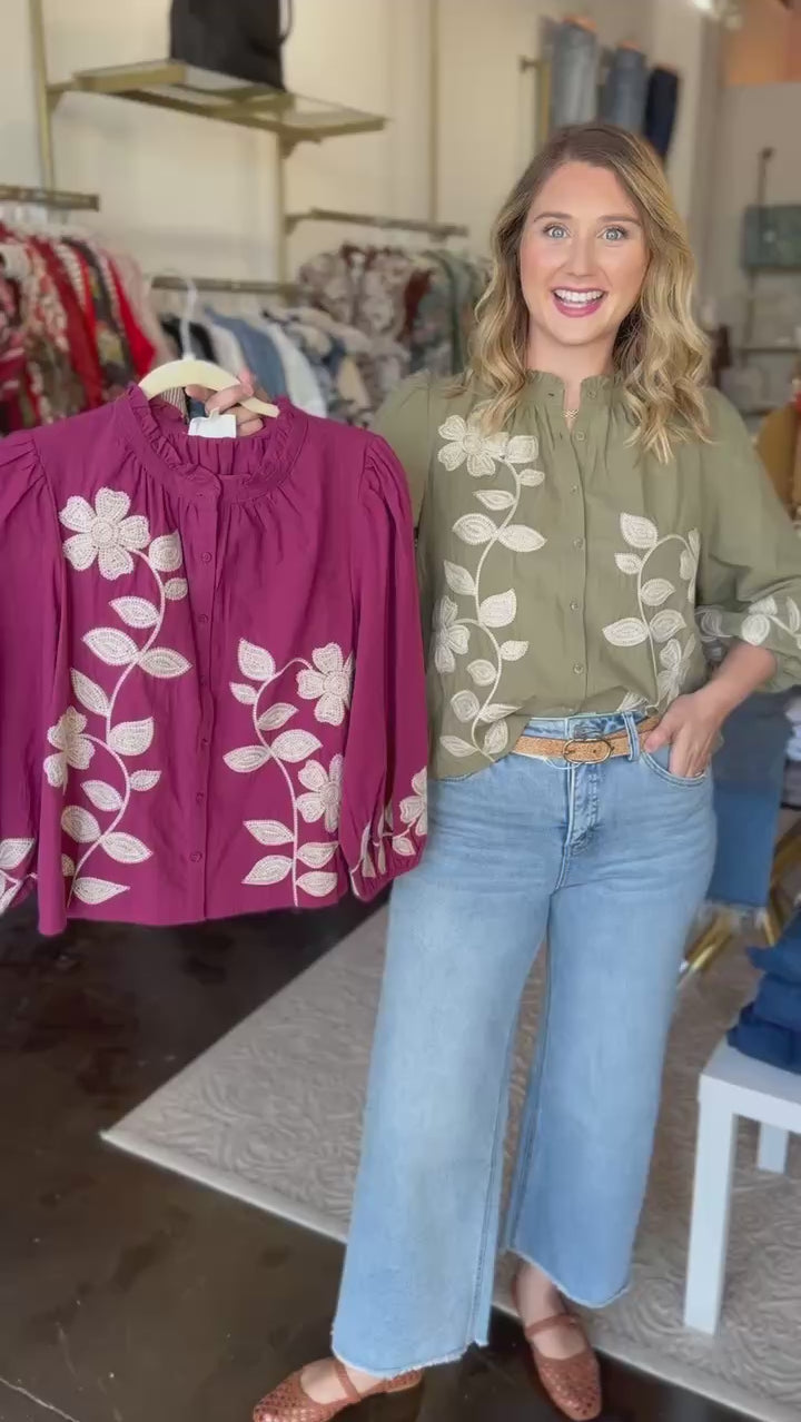 The Mallory Embroidered Blouse features delicate embroidery that adds a refined, feminine touch perfect for fall. Crafted with luxe details and an easy silhouette, this blouse offers effortless style that transitions seamlessly from day to night.