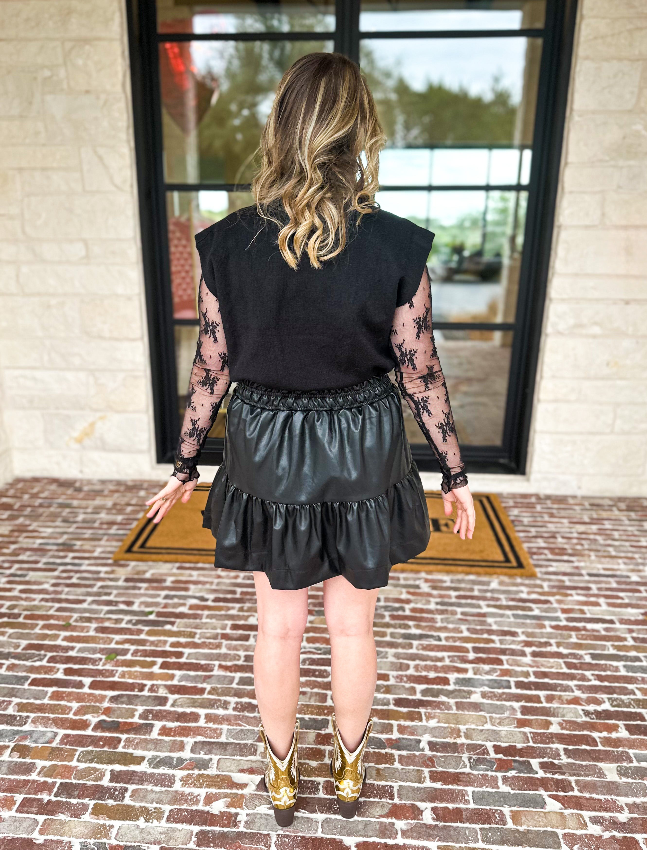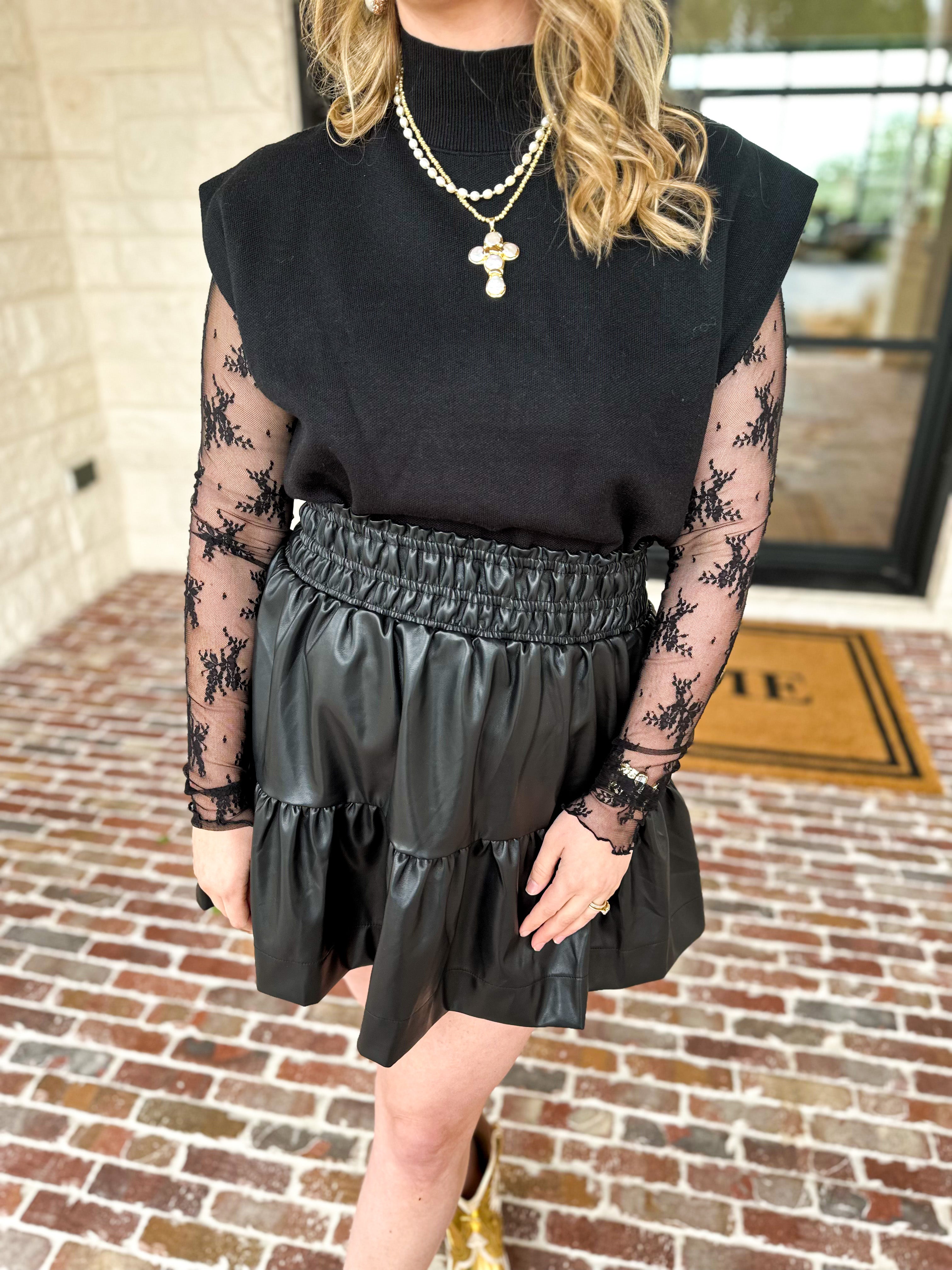 Sheer Long Sleeve Layering Top - Black Lace