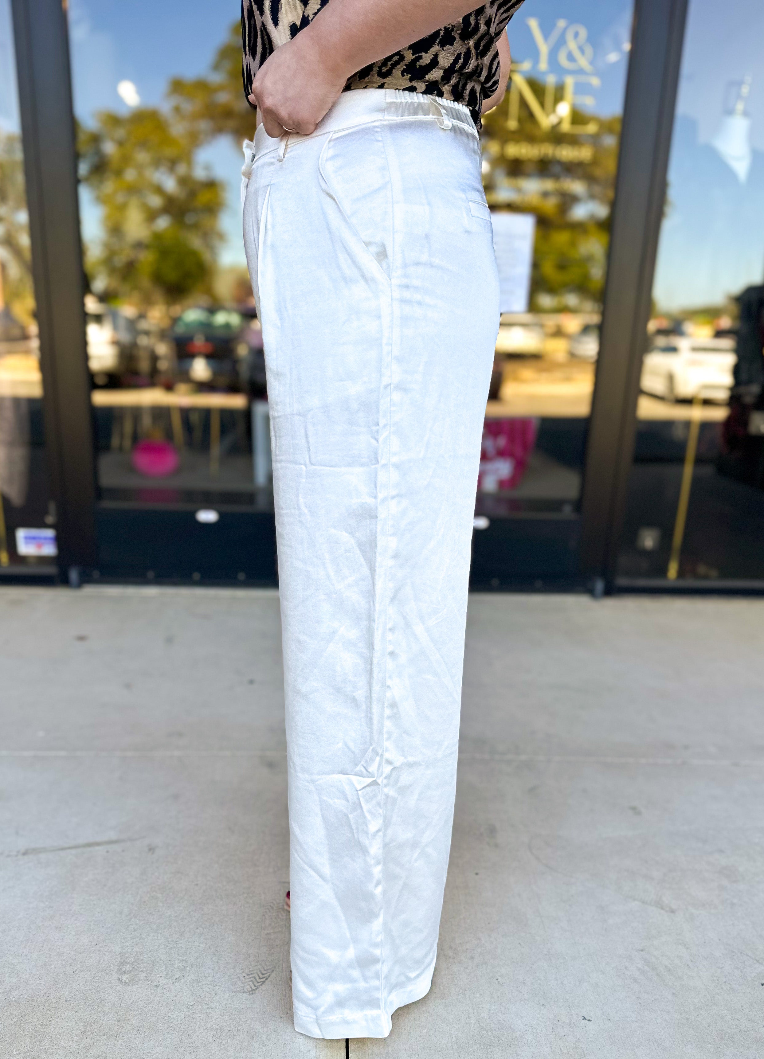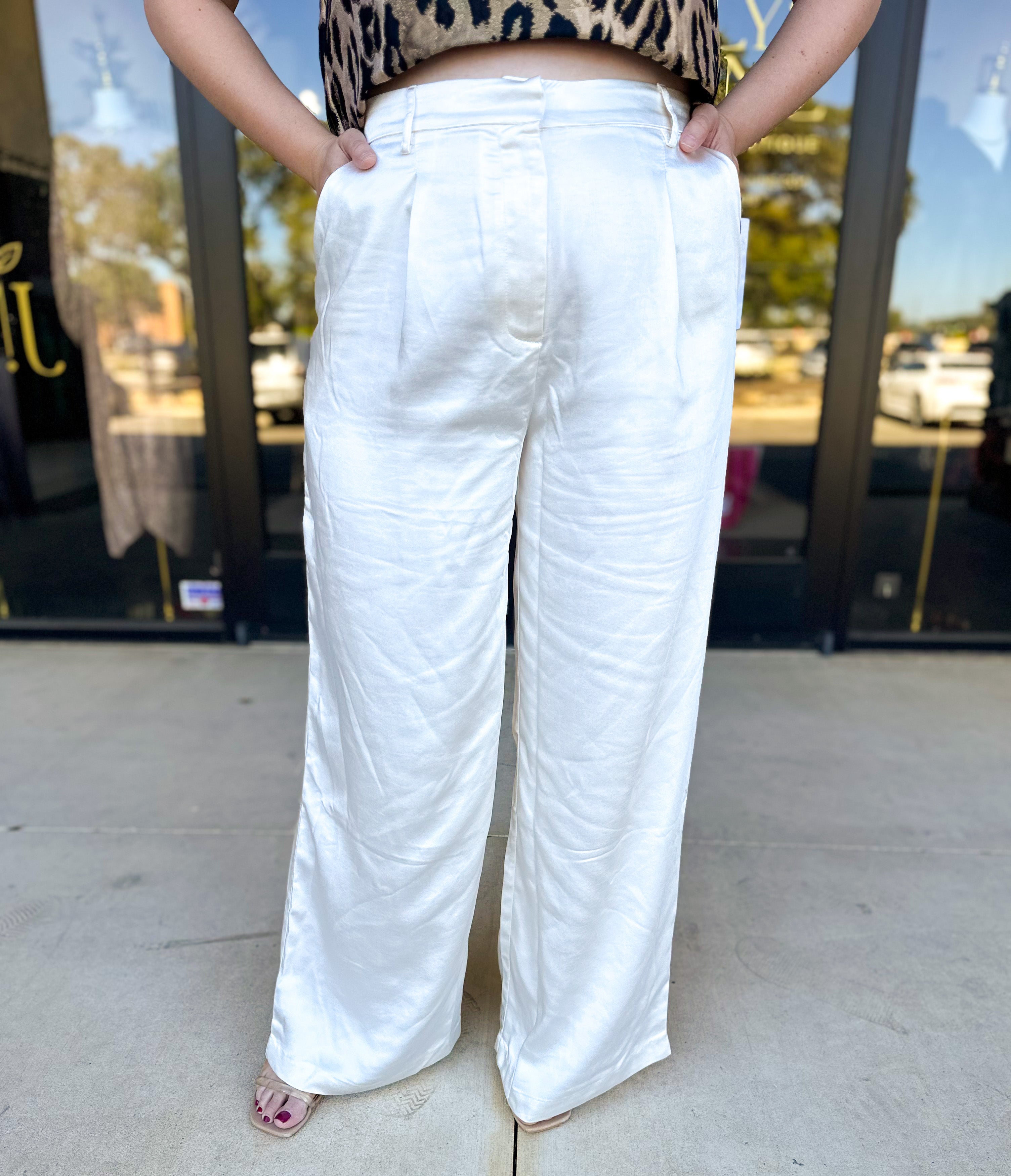 Elevate your wardrobe with these Chic Satin Trouser Pant. They effortlessly blend chic style with a classy touch. Easily wear during the holidays or to work with your favorite sweater or blouse!