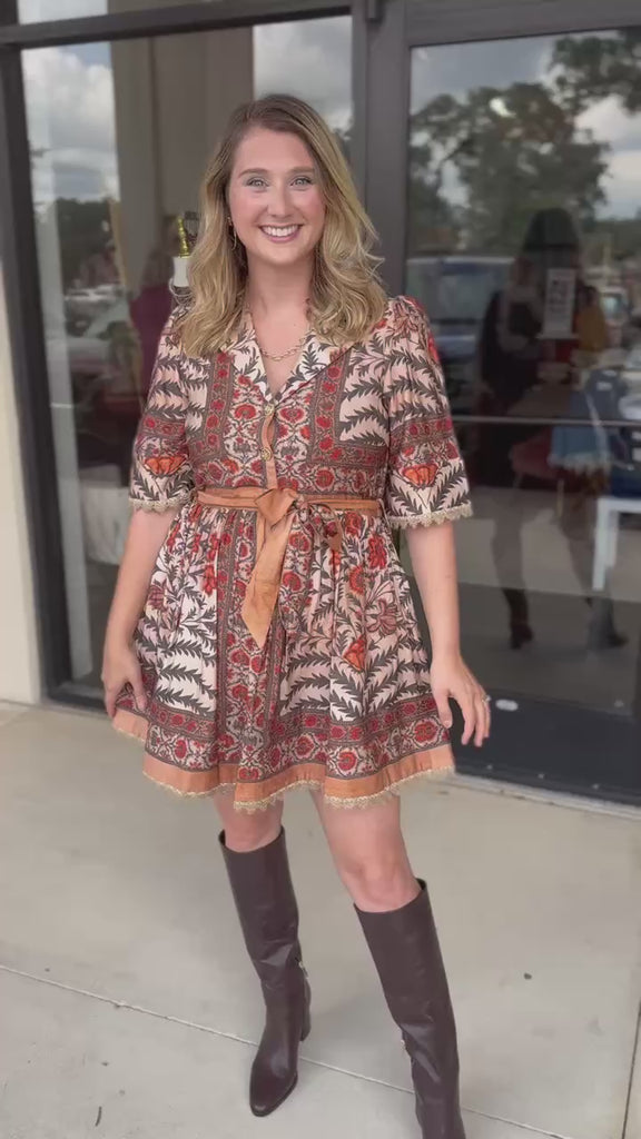 Embrace effortless fall style with the Charcoal Boho Mini Dress. Featuring a lightweight, breathable fabric and a charming boho-inspired print, this dress moves with ease and keeps you comfortable all day and is perfect to transition into a night time look just by switching shoes!