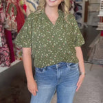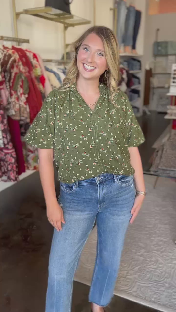 This THML Dainty Floral Corduroy Blouse features a delicate, small dainty floral print on textured corduroy fabric, capturing the warmth of fall tones. Its soft texture and subtle pattern create an effortless, cozy look perfect for layering in cooler weather!
