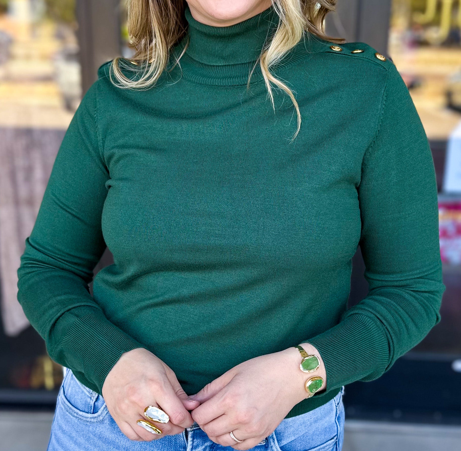 Experience the perfect blend of comfort and style with our Classic Turtleneck Sweater Top in 4 colors. Buttery soft and an ultra comfortable long sleeve that you can easily layer! Wear underneath vests or cardigans during the fall months! Chic gold button details make it extra special!