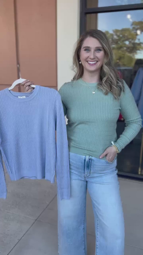 Tailored Cable Knit Sweater Top - Sage