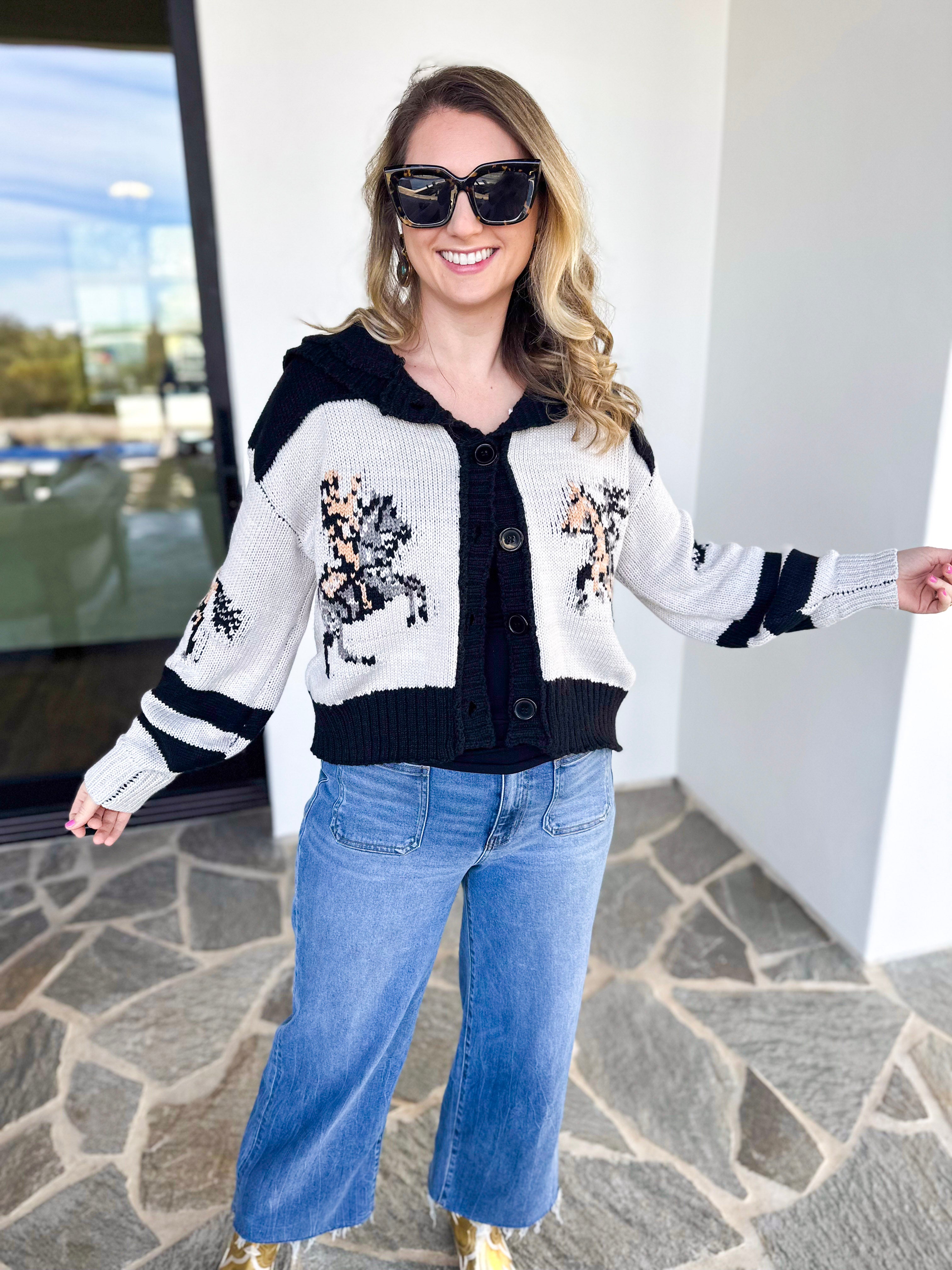 Western charm meets cozy comfort — The Beth Cardigan is made for rodeo nights, crisp mornings, and everything in between. Featuring rich brown tones and western print, this standout knit brings flair with an easy, throw-on-and-go feel!