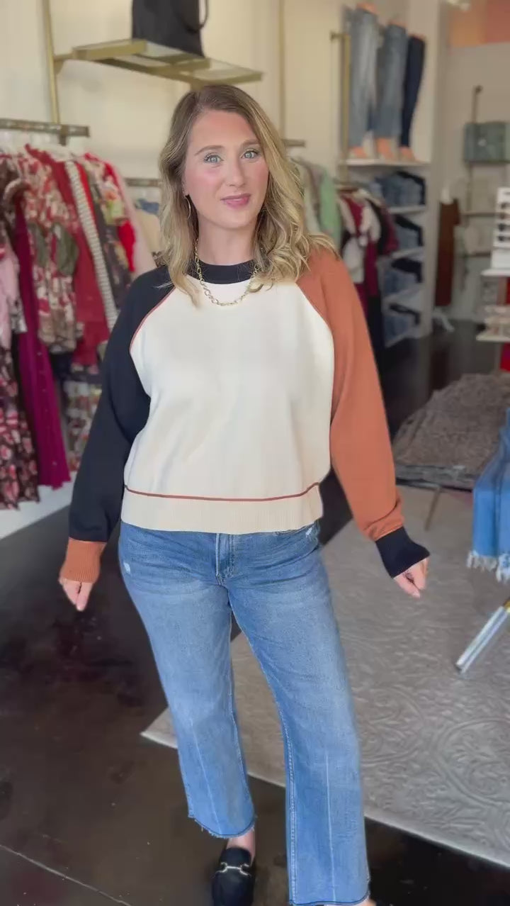 Embrace cozy warmth with the THML Colorblock Sweater in classic fall colors. Its soft fabric makes it ideal for effortless layering, adding a stylish yet comfortable touch to your seasonal wardrobe. Perfect for crisp days and relaxed outings!
