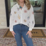 Linen Seashell Embroidered Button Down
