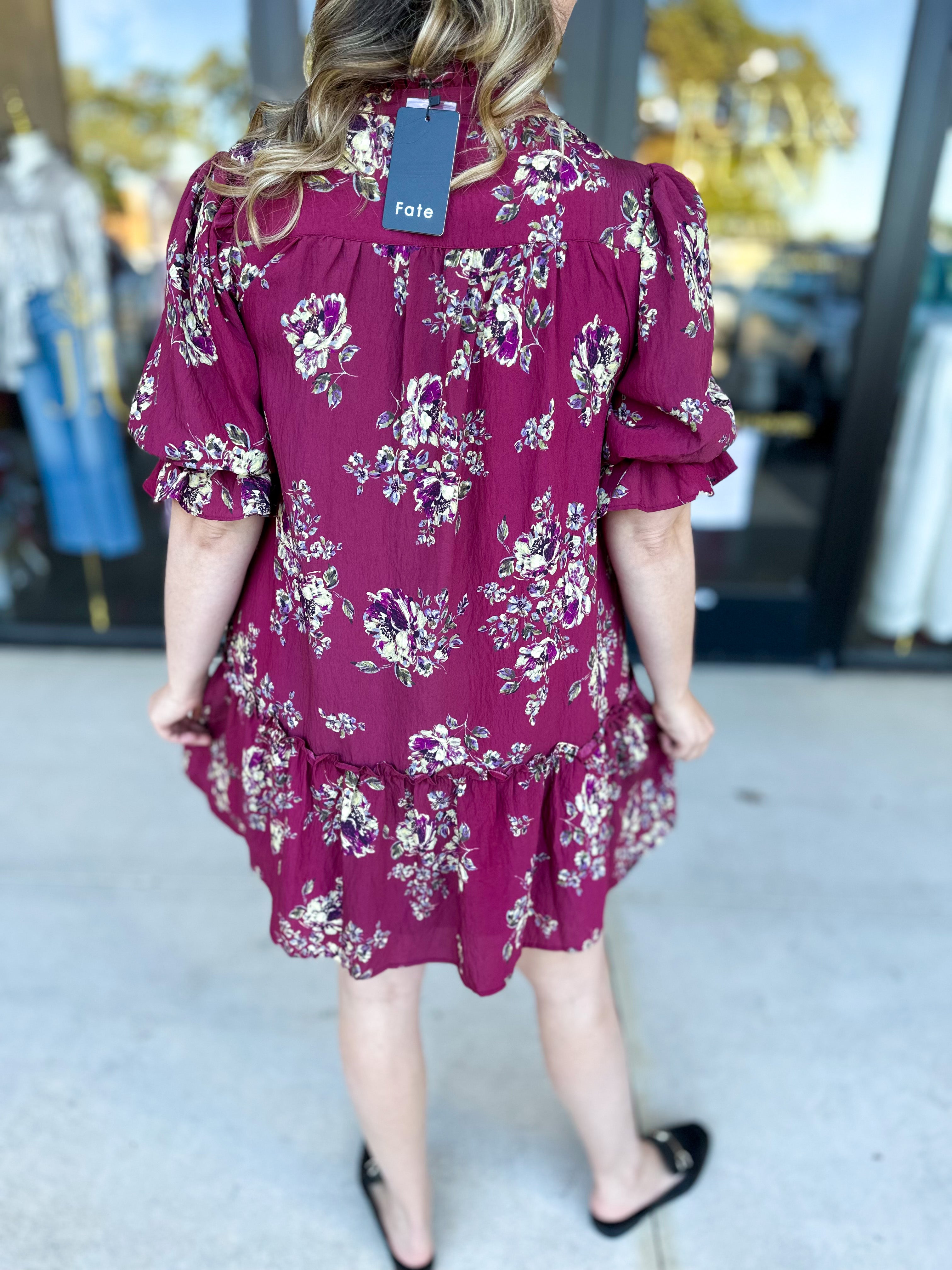 Red Plum Floral Mini Dress