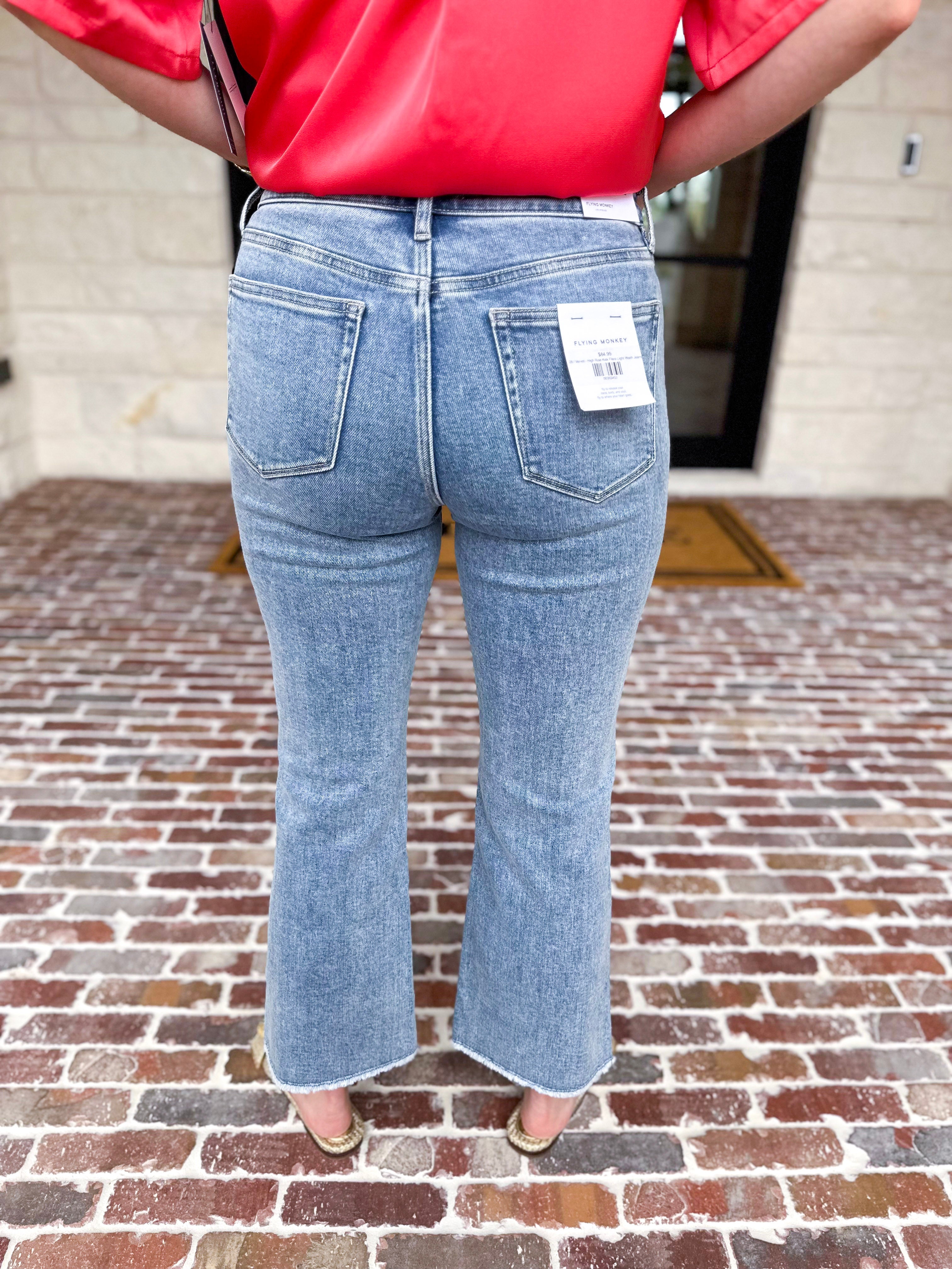 Our High Rise Kick Flare Light Wash Jeans are perfect for all seasons and any occasion. With great stretch, they can be worn comfortably all day long. Whether dressing up or having a casual day, these jeans are a must-have and such an easy addition to your closet!
