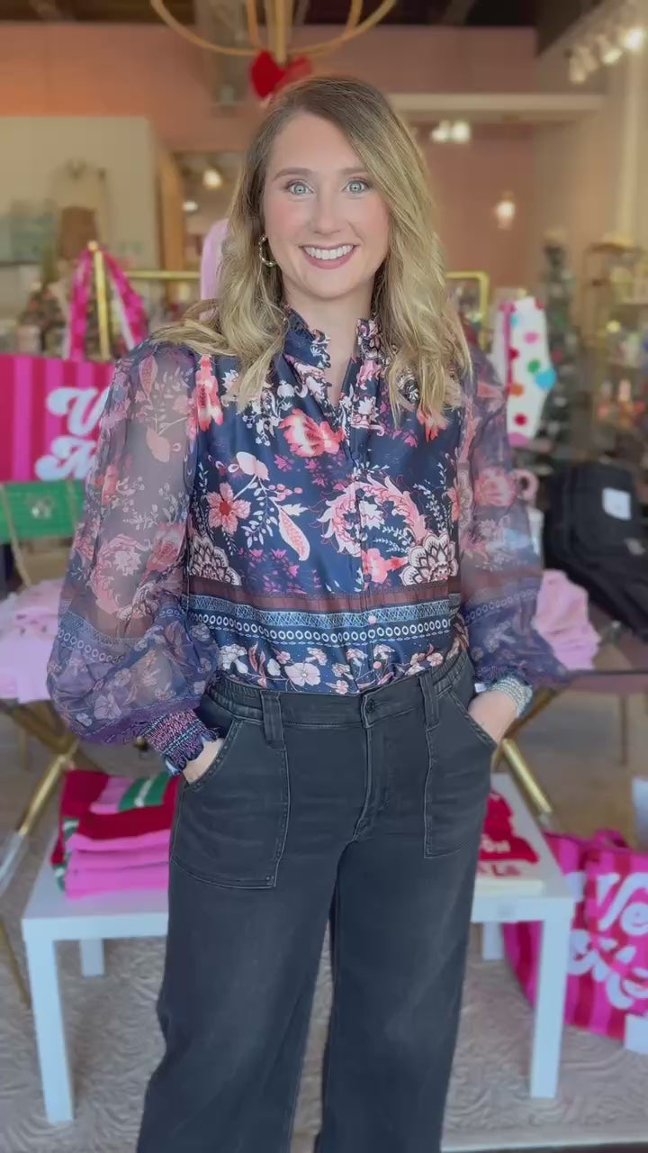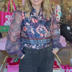 Discover why this Deep Blue Floral Blouse is the season's essential piece. The fun floral print delivers that pop of color you want this season! Versatile enough for work or weekend, this blouse transforms any look into something special.