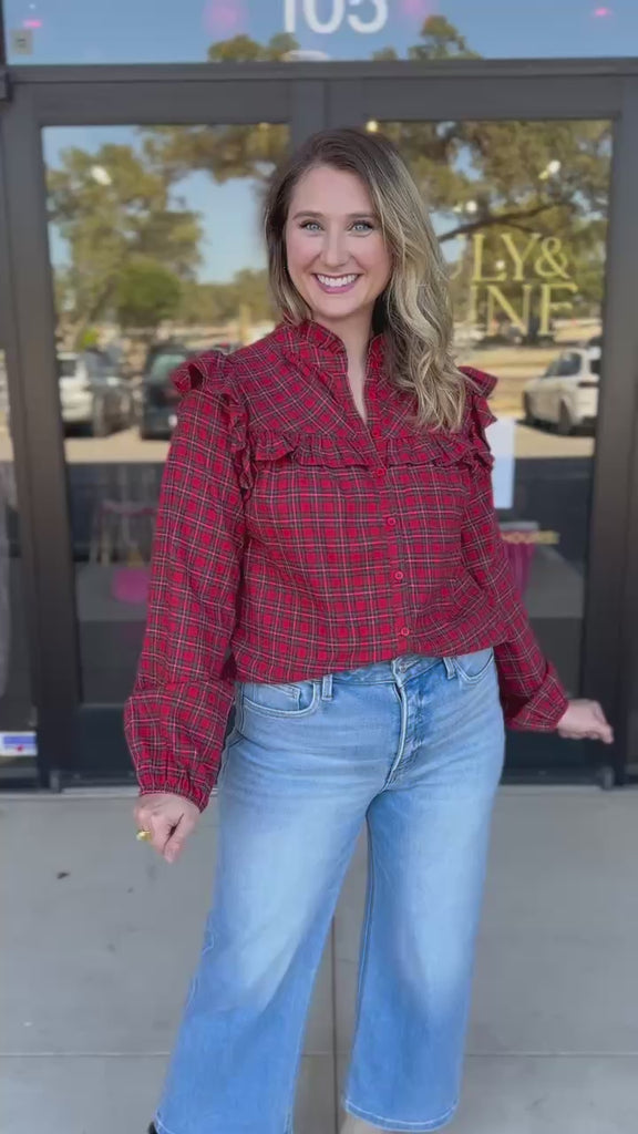 Keep it casual or dress it up, this Tartan Ruffle Blouse has got you covered! Made from soft material, with fun ruffle details, it's perfect for any occasion. Stay stylish and comfortable during the holiday season!