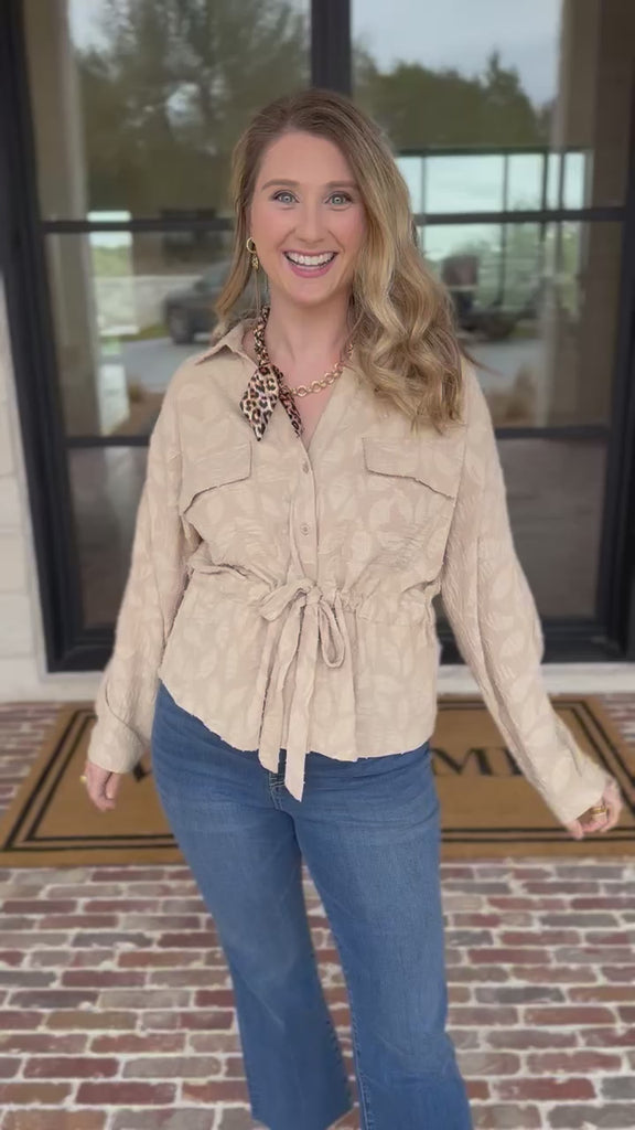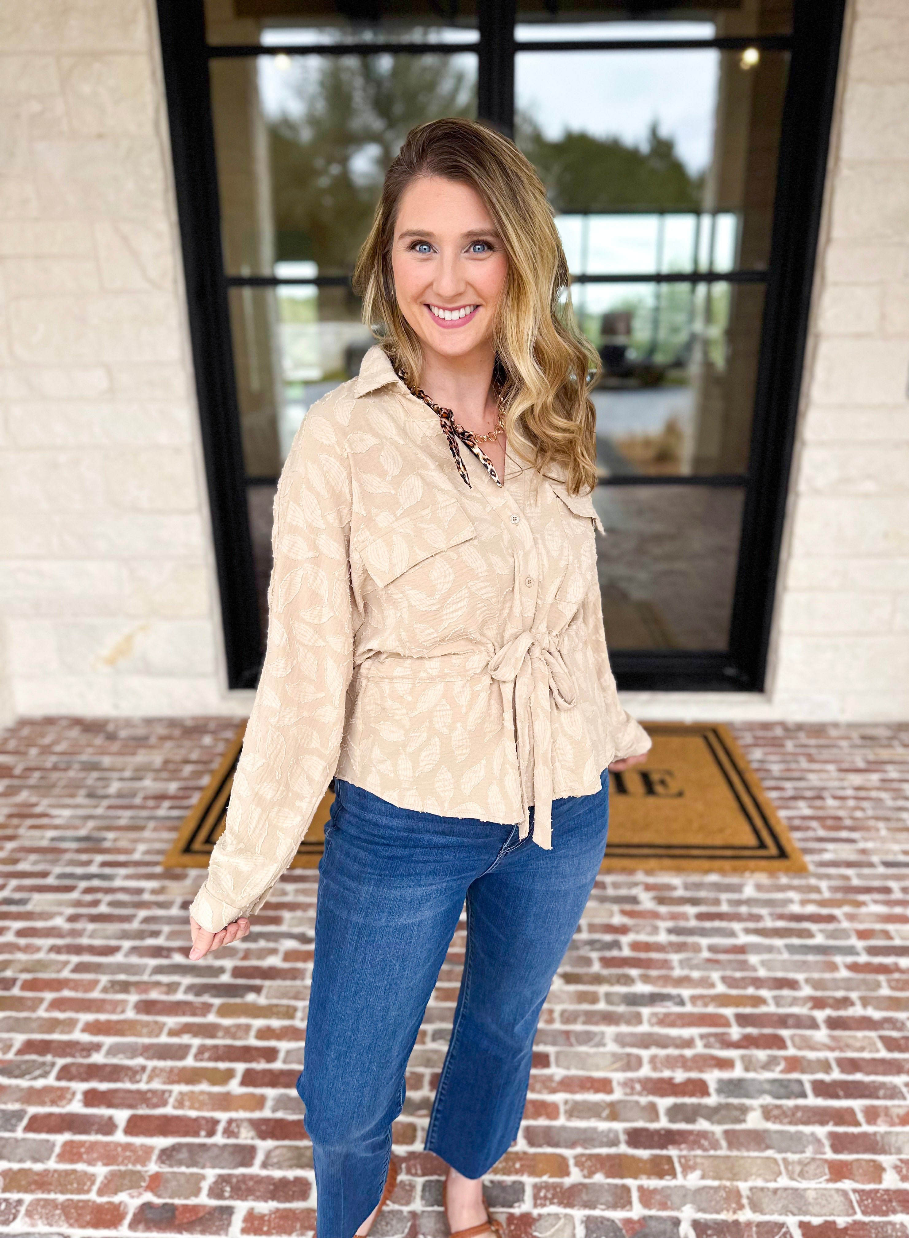 Soft, feminine, and easy to wear — the Organic Florals Cinch Blouse is one of those tops that instantly pulls a look together. Featuring a subtle floral texture, button-front detail, and a flattering cinched waist with a tie, this blouse blends relaxed charm with everyday versatility!