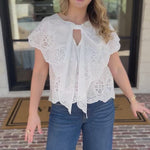 Ivory Eyelet Bow Front Blouse