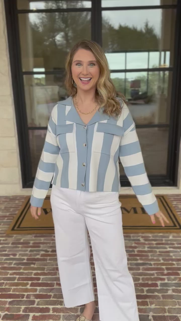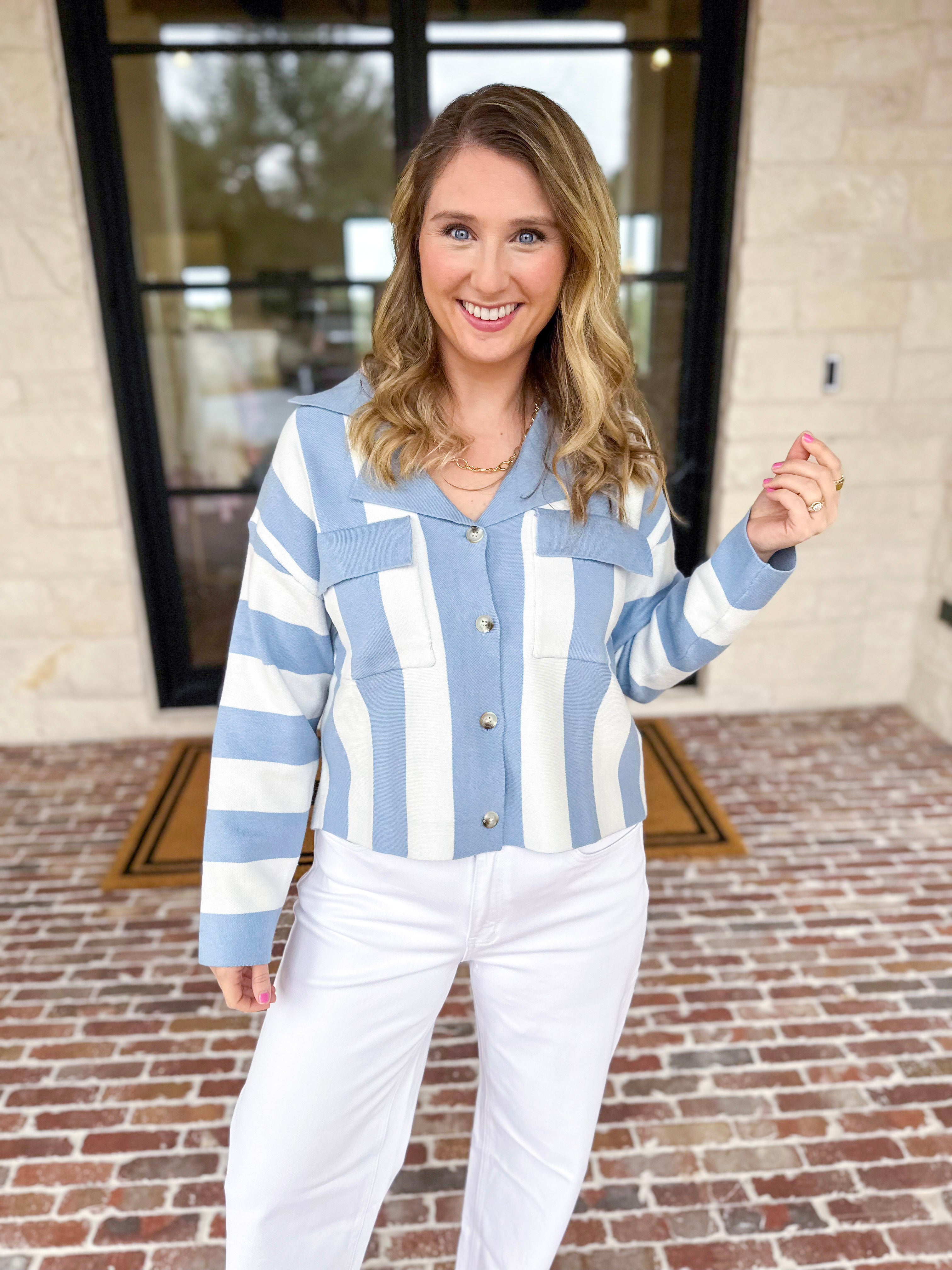 This collared sweater captures coastal spring style with understated sophistication—wear it layered over a white tee for a trendy look or solo. The versatile design makes it a go-to piece that effortlessly transitions from season to season. Chic, wearable, and endlessly adaptable!