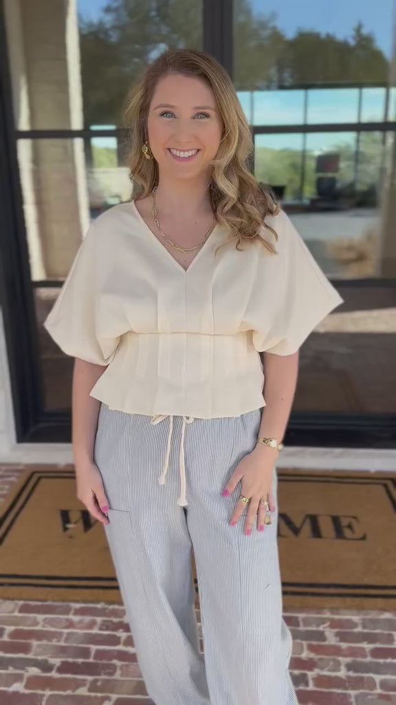 Soft, chic, and effortlessly feminine, the Striped Twill Elastic Barrel Pants are the kind of easy staple you’ll reach for again and again. Featuring a subtle stripe pattern and a relaxed barrel silhouette, these pants blend comfort with elevated style. Lightweight twill fabric and an elastic waist make them perfect for all-day wear!