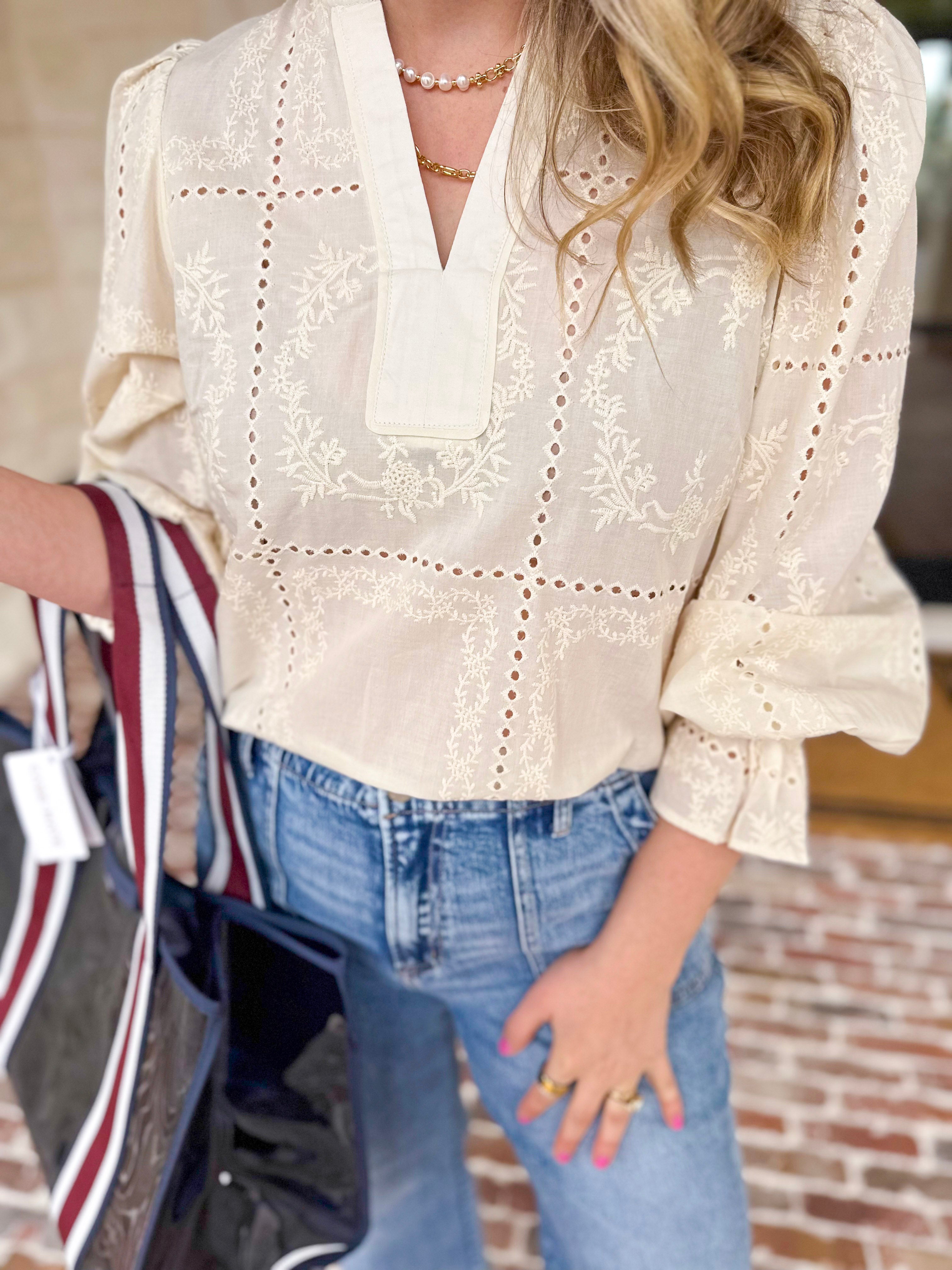 Bloom Where You're Planted Blouse - Vanilla Cream