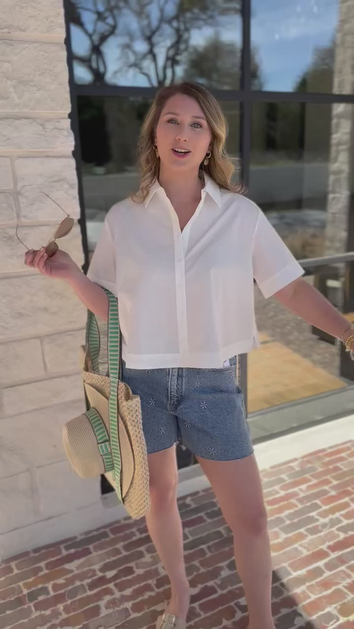 - Pair with denim shorts and sandals for an easy, polished daytime look
