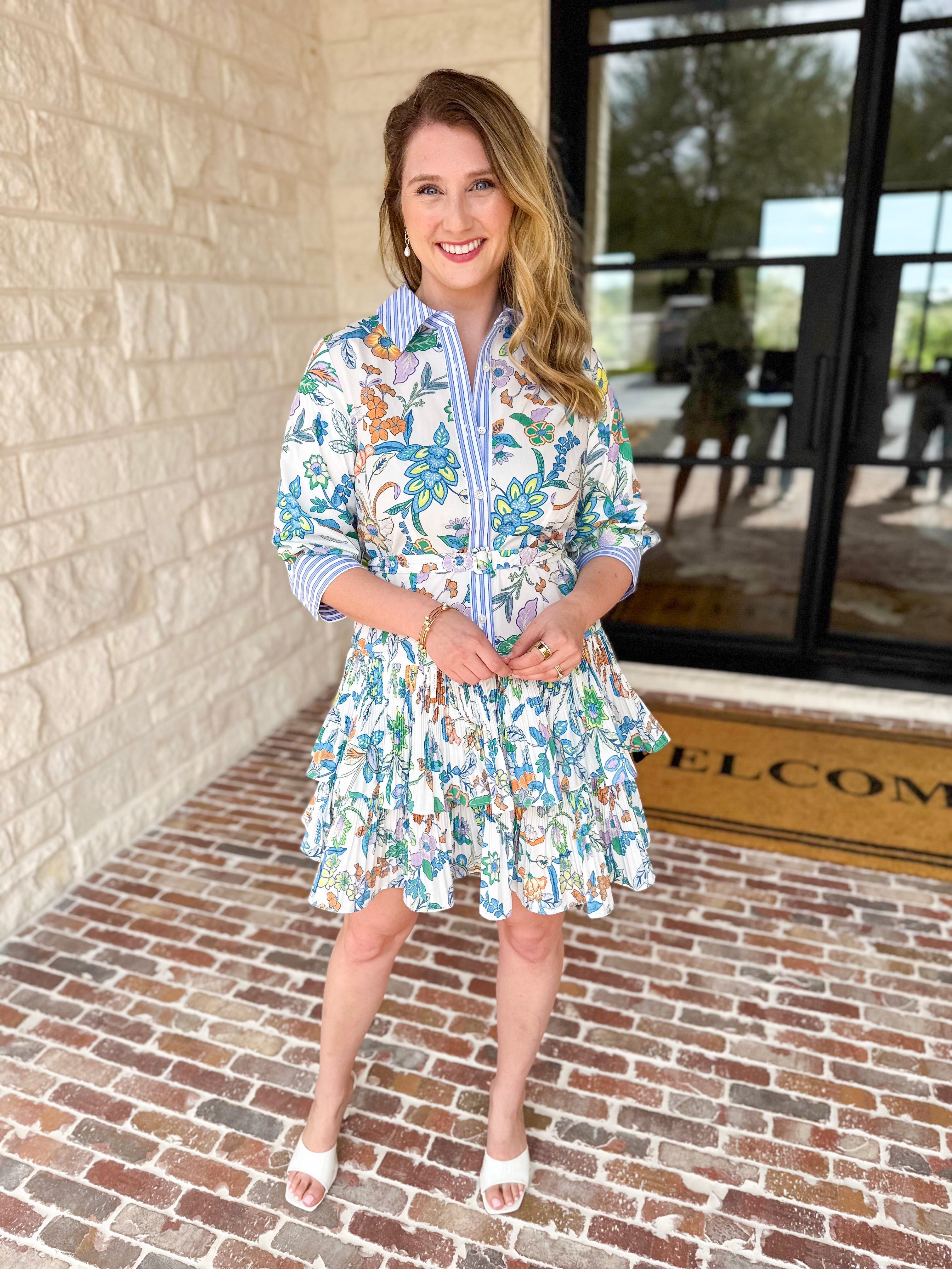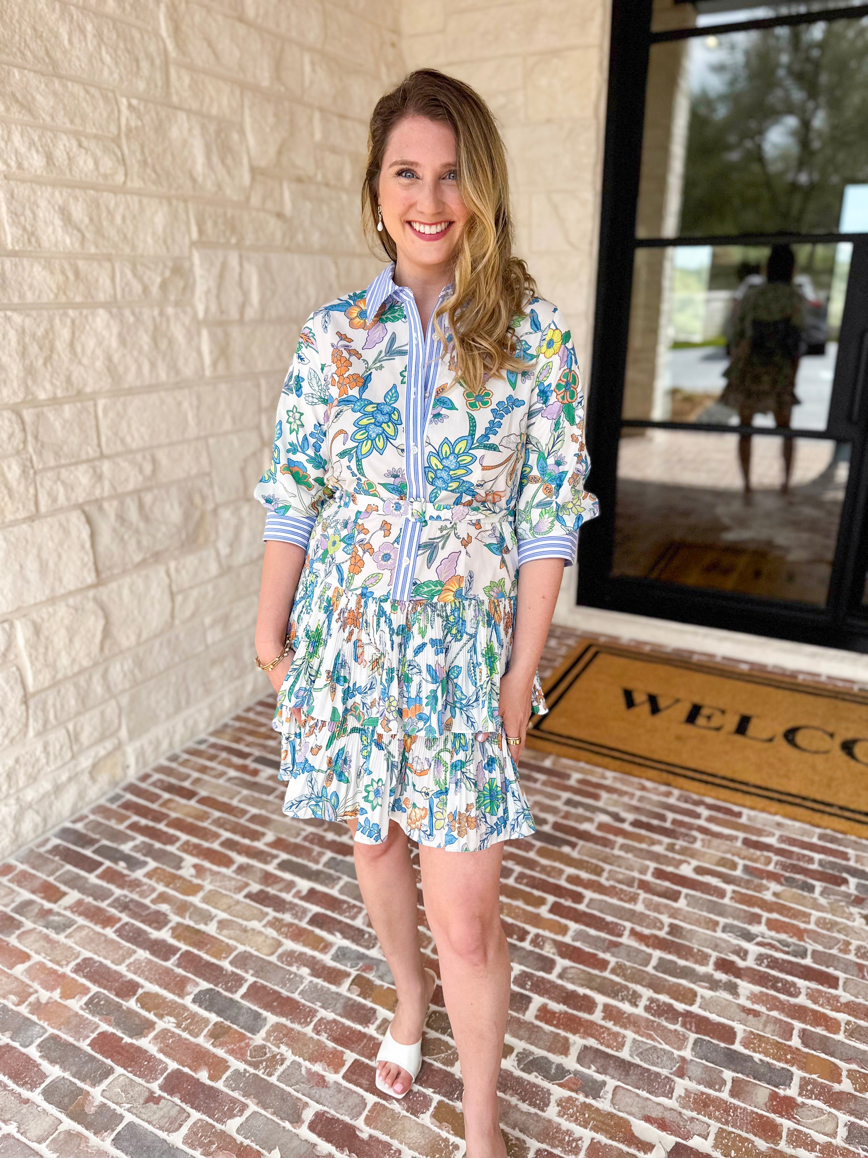 Create the perfect spring look with the Floral Contrast Stripe Mini Dress! Featuring feminine pleating details and gorgeous florals, this dress is the ultimate spring closet staple. Perfect for any special event, this dress will have you looking and feeling your best!