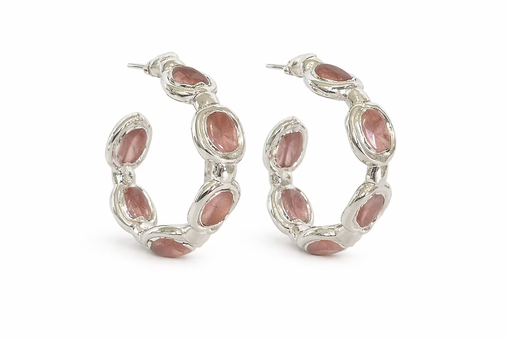 Easton Elle - Paradise Pearl Hoop Earrings - Silver & Pink Quartz