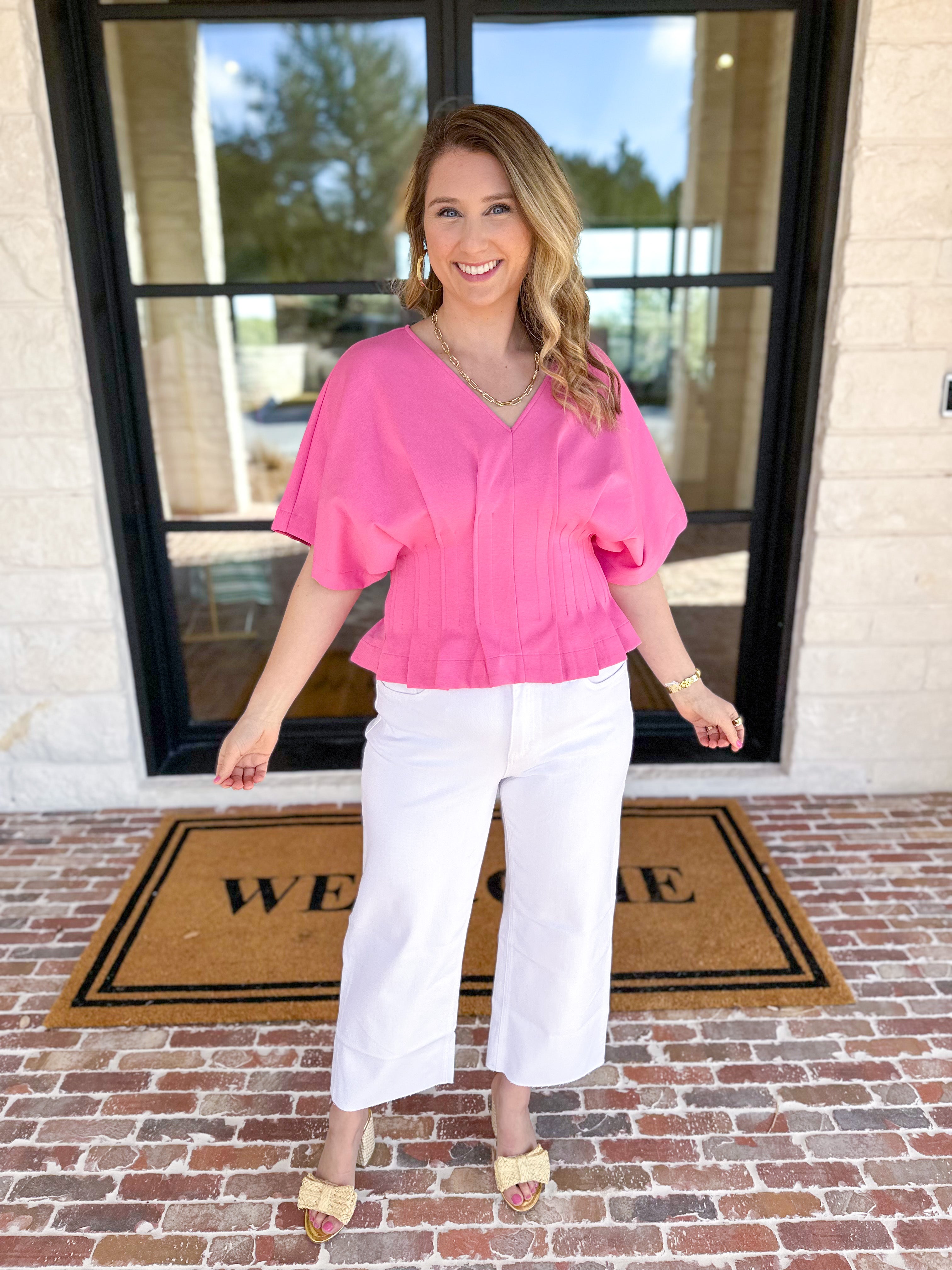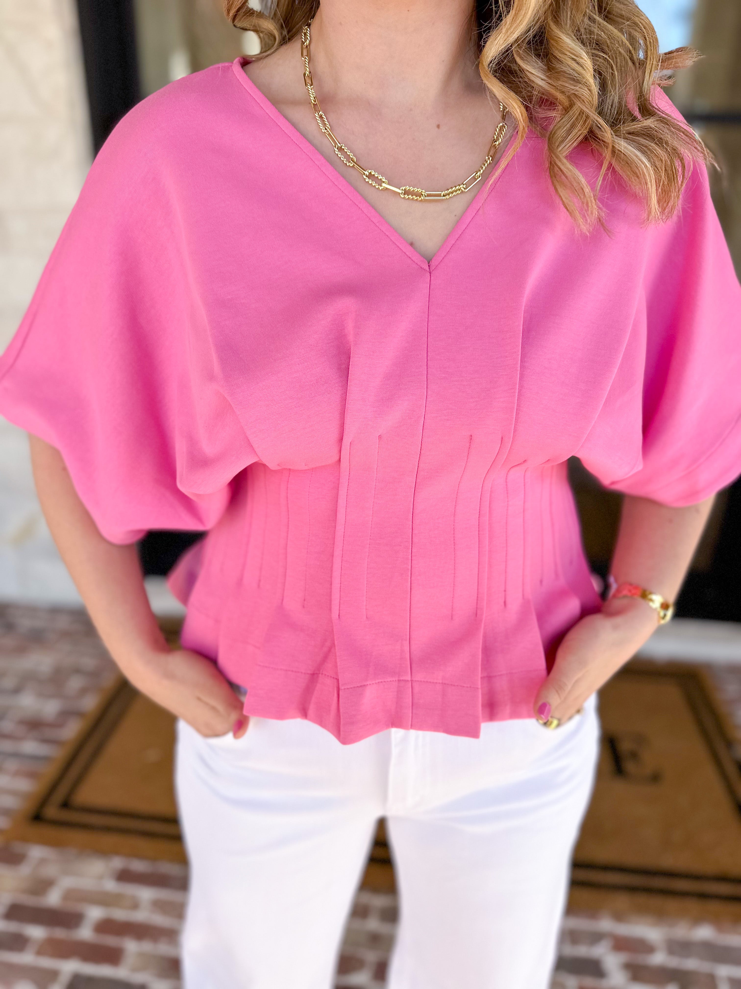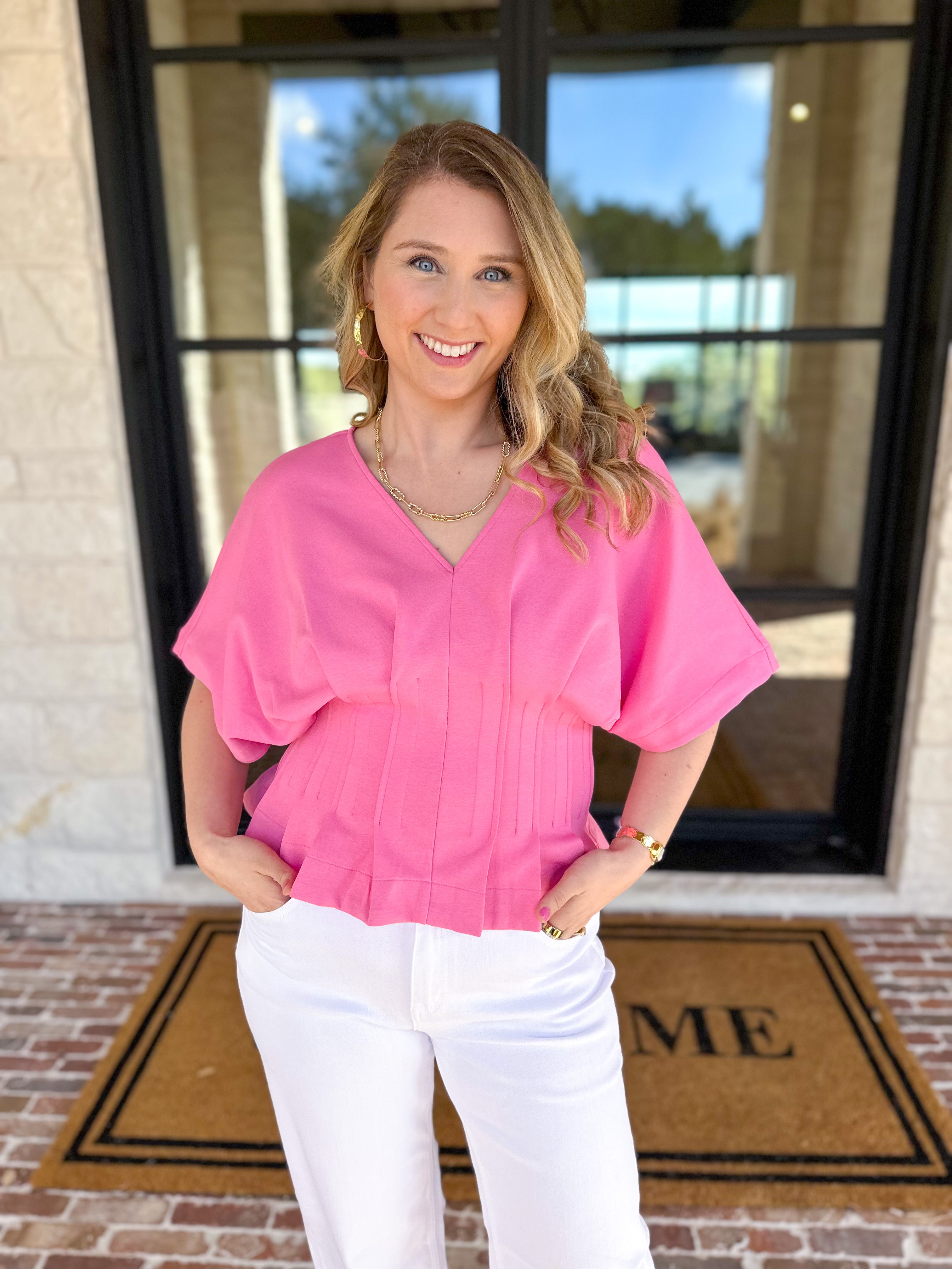 Sleek, flattering, and effortlessly elevated, the Elevated Chic Top is the kind of statement piece that instantly pulls a look together. Designed with soft pleating through the bodice and a relaxed, draped sleeve, this top adds dimension and movement while keeping things comfortable and wearable!