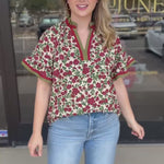 Burgundy & Olive Floral Blouse