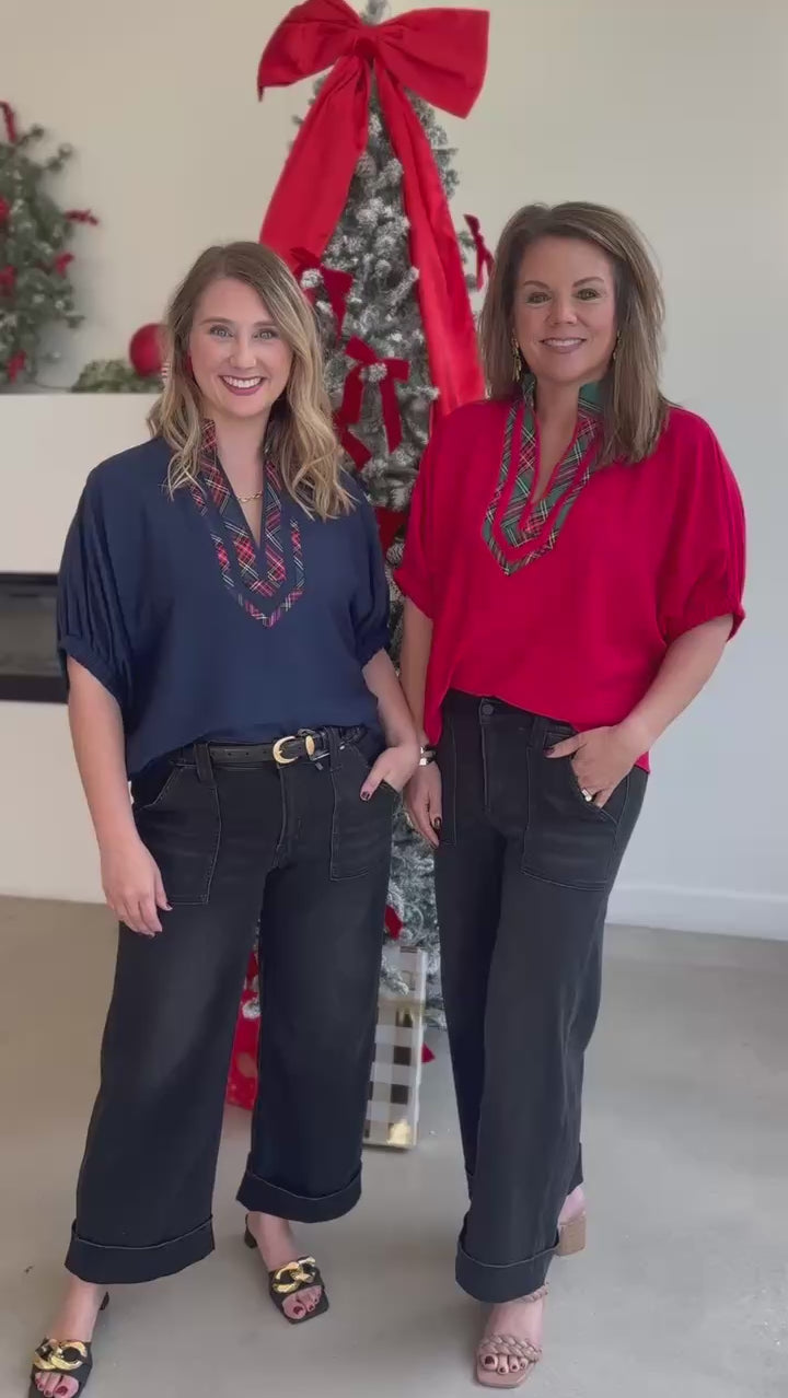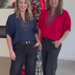 The Stacy Blouse brings together timeless elegance with a charming classic Christmas print. Crafted from lightweight fabric, it's designed for all-day comfort without sacrificing style. A customer favorite for good reasons!