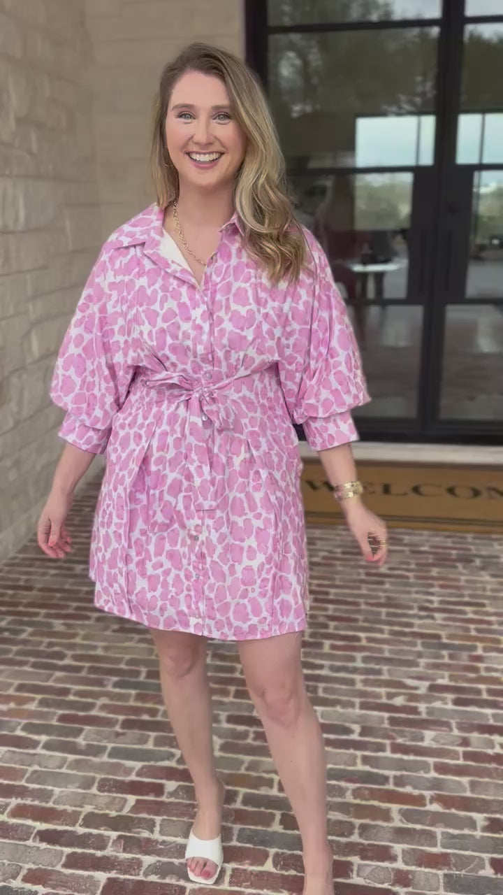The Pink Poppy Mini Dress is playful, pretty, and full of personality. Featuring a cheerful pink poppy print, button-front details, and a waist-defining tie, it’s designed to flatter while keeping things fun. An easy favorite for spring plans, parties, and days you want your outfit to do the smiling for you!