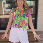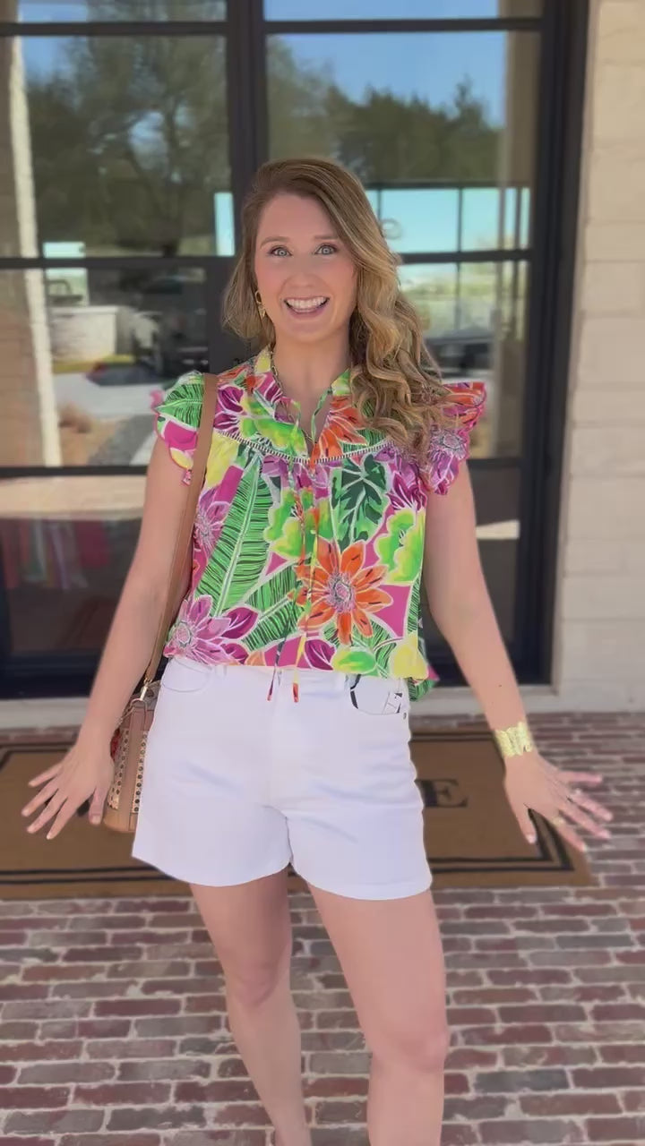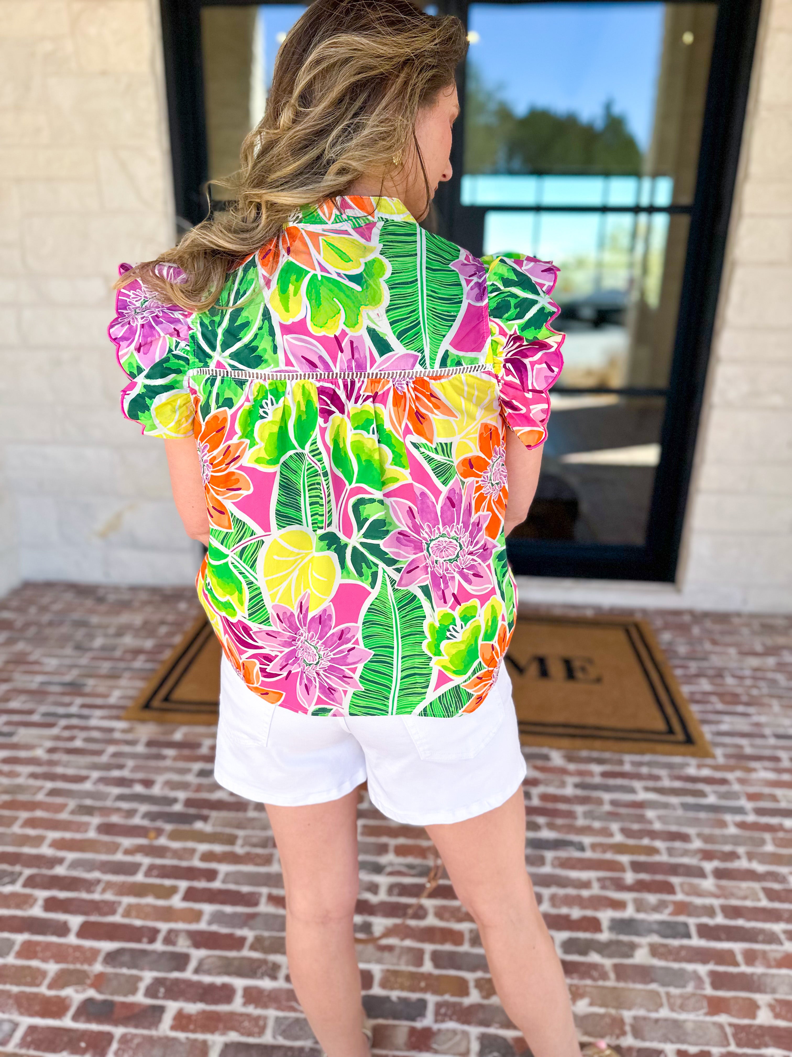 Bold, punchy and colorful — the Take Me To The Tropics Blouse is a fun top with thoughtful details you’ll love. The perfect thing for your next vacation or day out with friends this spring and summer!