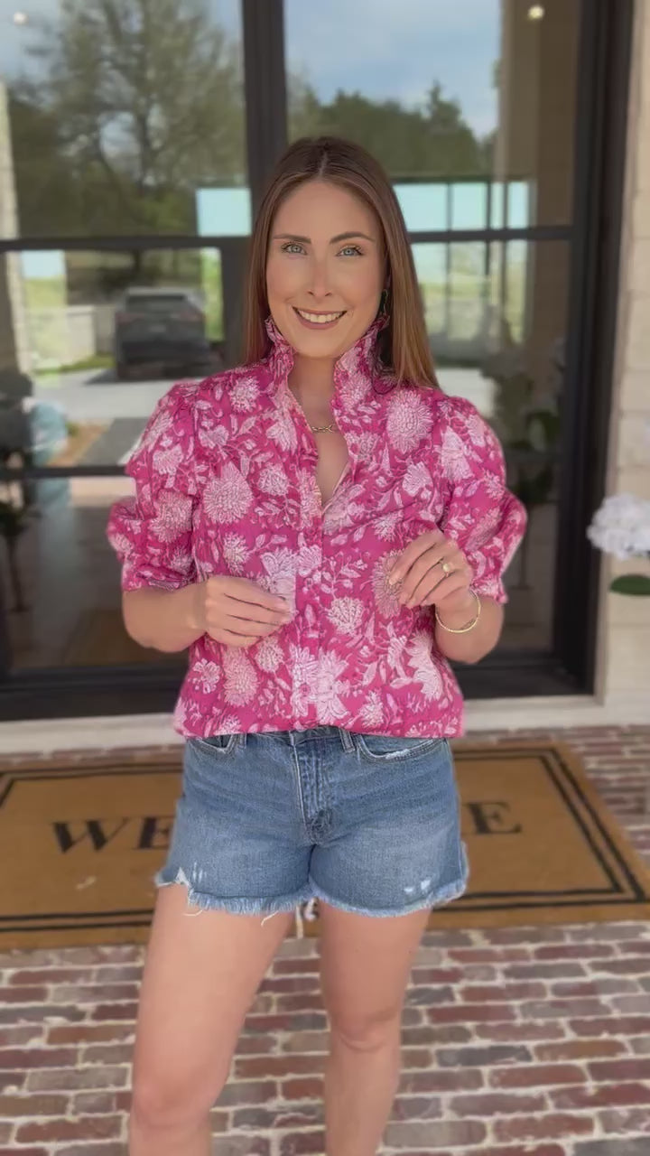 The Punchy Pink Floral Blouse is bold, bright, and full of feel-good energy. Featuring a vibrant pink floral print and playful puff sleeves, it’s the perfect mix of statement and sweetness. Pair it with denim or dress it up—either way, it’s made to turn heads and lift your mood!