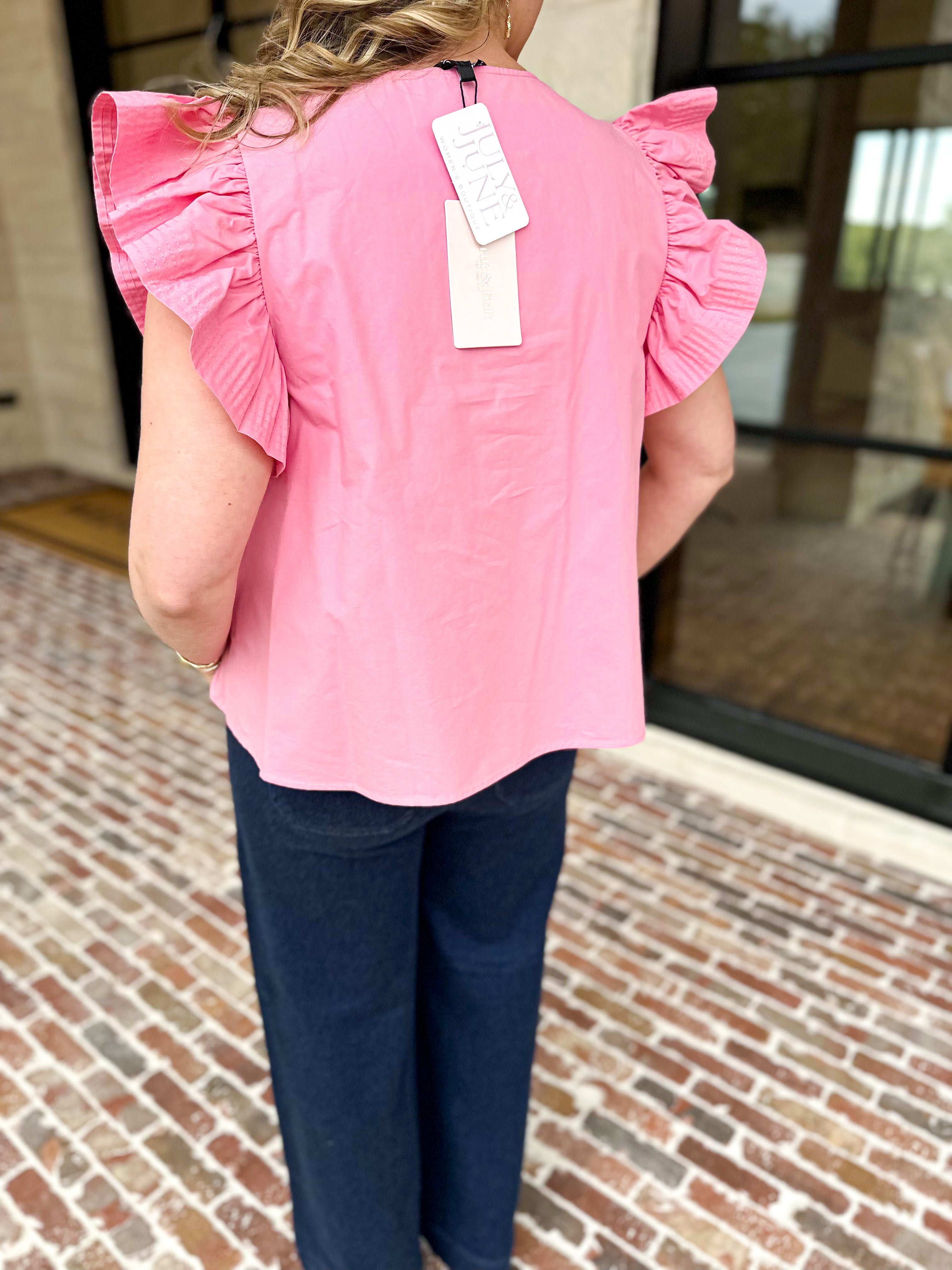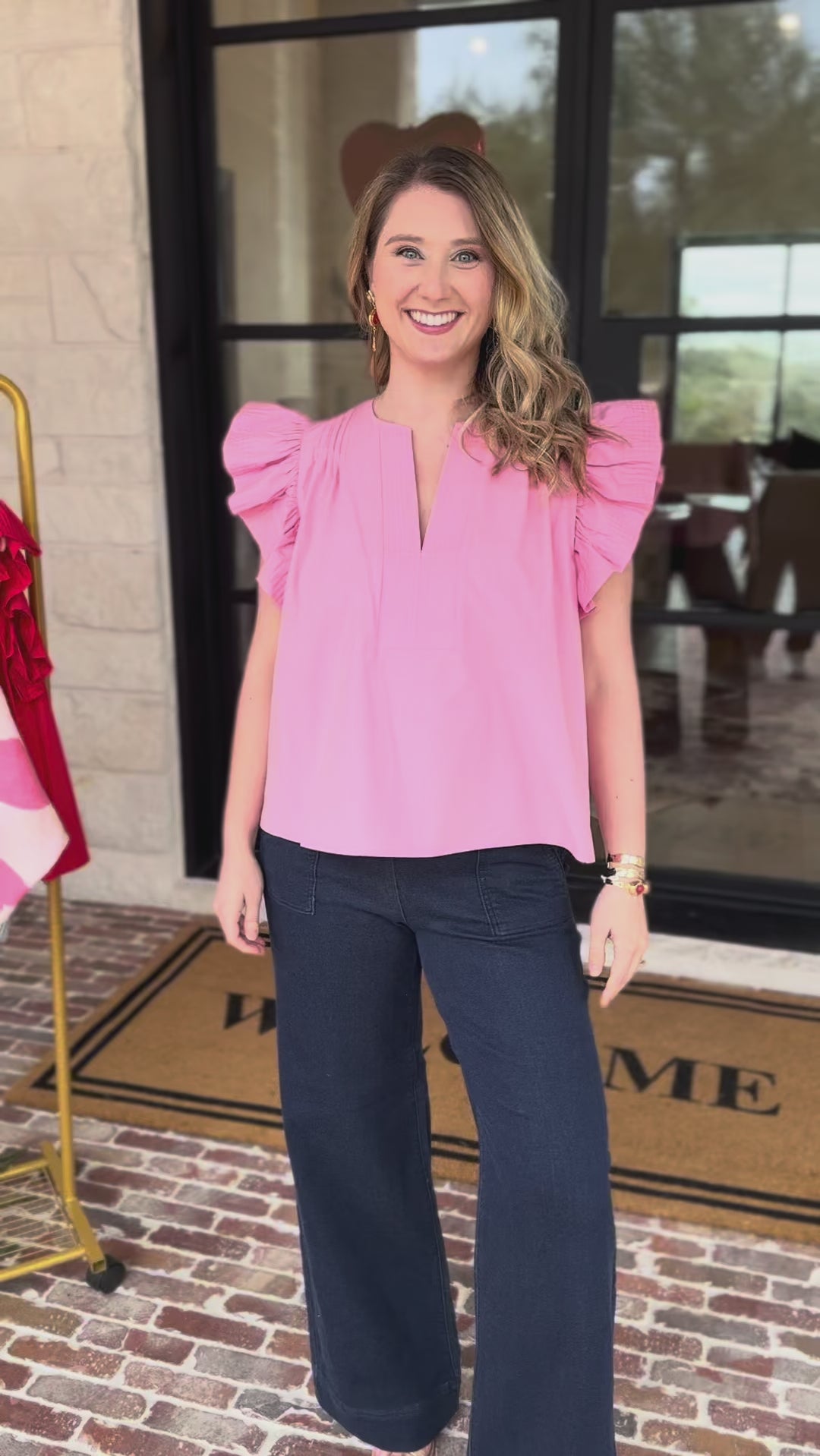 Our Flutter Sleeve Poplin Blouse is the perfect top for polished everyday wear. Designed with fun flutter sleeves and a flattering silhouette, this blouse brings just the right amount of charm to a clean, classic style. Made from good quality poplin, it’s comfortable, breathable, and easy to dress up or down.