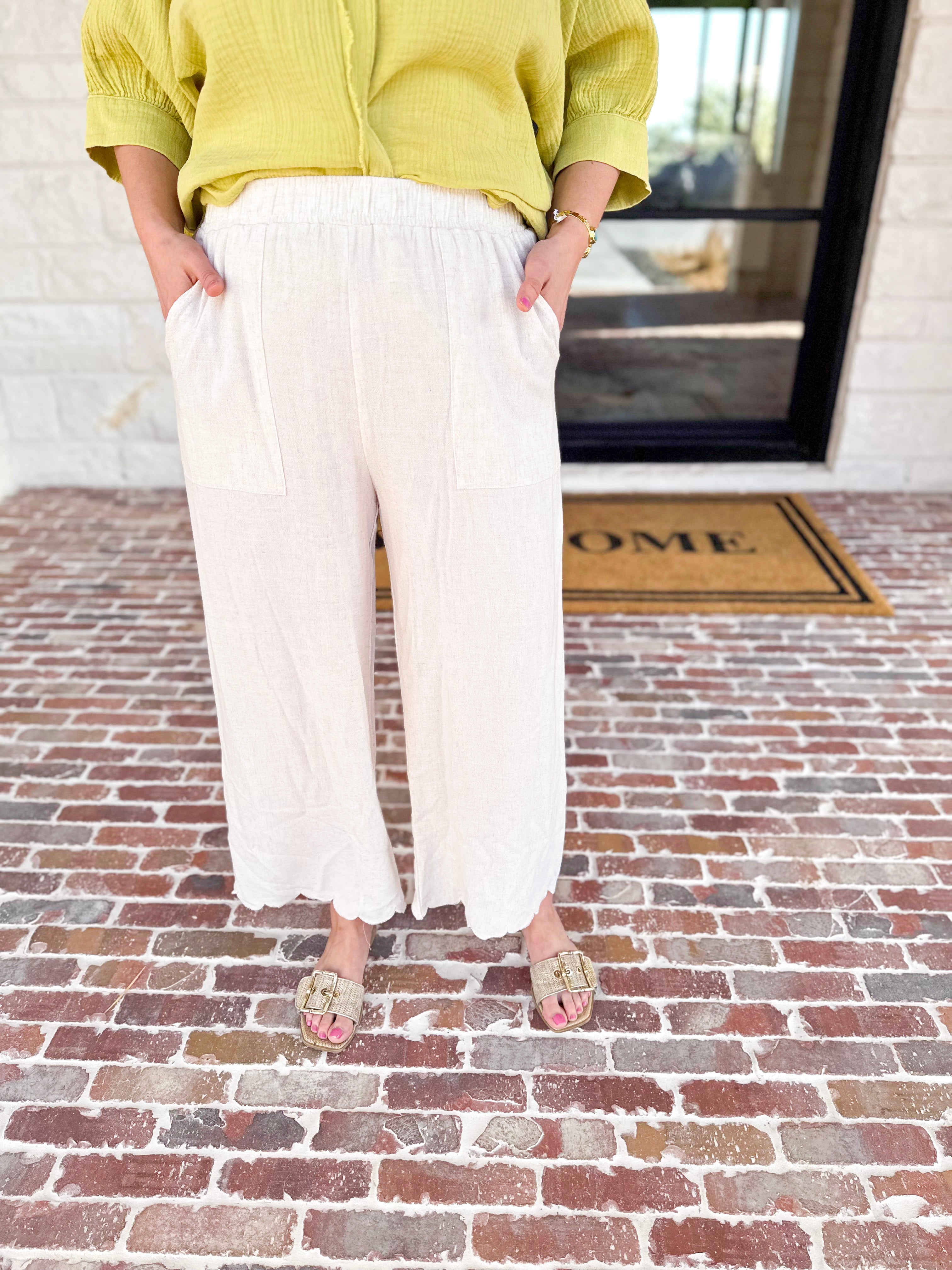 Linen Scalloped Pants - Natural-400 Pants-ALLIE ROSE-July & June Women's Fashion Boutique Located in San Antonio, Texas