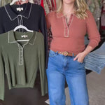 Experience the perfect blend of comfort and style with our Tailored Knit Long Sleeve in 3 fall colors. Buttery soft and an ultra comfortable long sleeve that you can easily layer! Wear underneath vests or cardigans during the fall months!