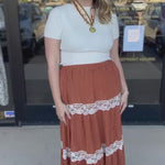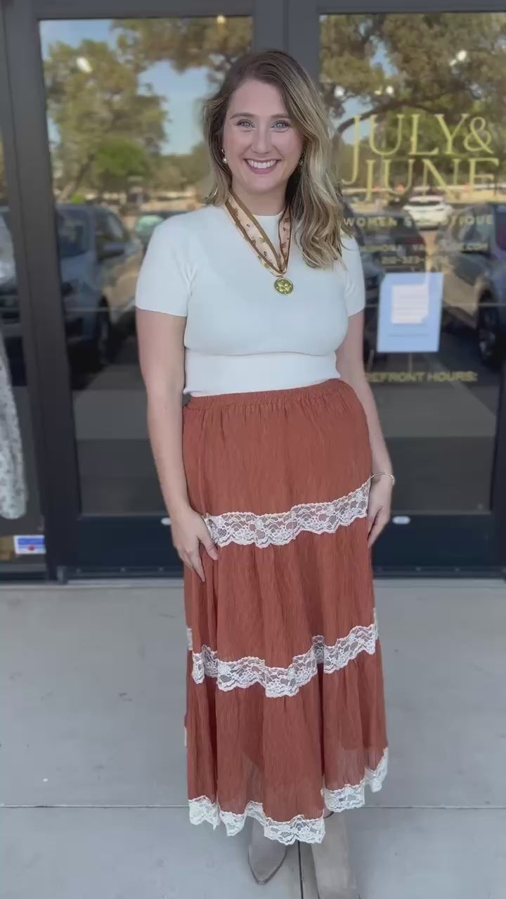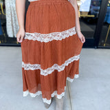 Rust Lace Midi Skirt